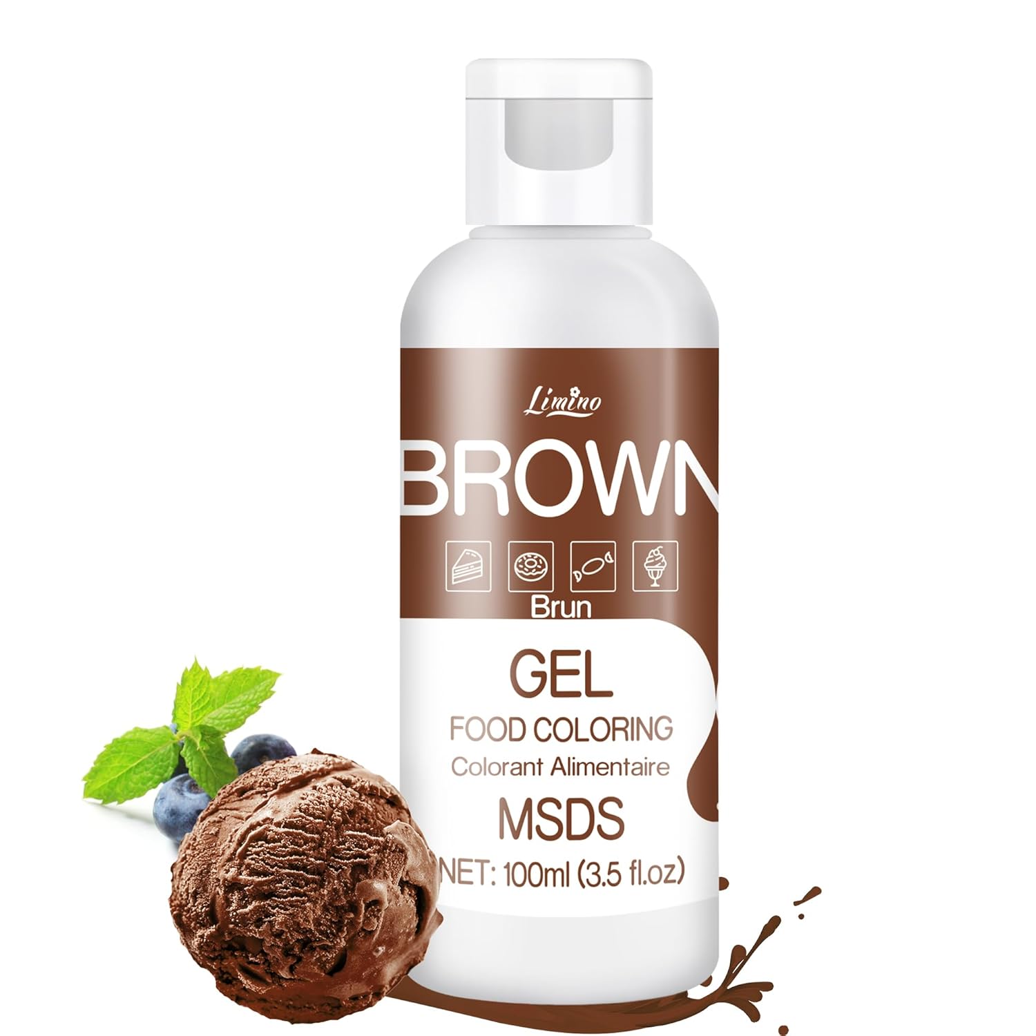 Gel Food Coloring - 4.5oz Vivid Food Coloring Gel for Baking, Cake Decorating, Cookie, Fondant, Macaron - Tasteless Concentrated Edible Food Color Dye for Icing, Slime, Drinks, DIY Crafts (Brown)