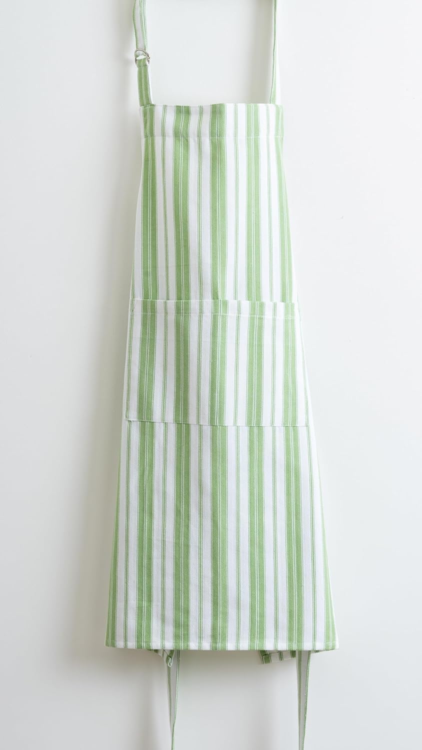 1 Oven Mitt, 1 PotHolder & 1 Kitchen Apron Set - Durable Heat Resistant Gloves - Thick Mittens for Kitchen - Suitable for Cooking, Baking, Grilling – Men & Women – Grass Green Stripes