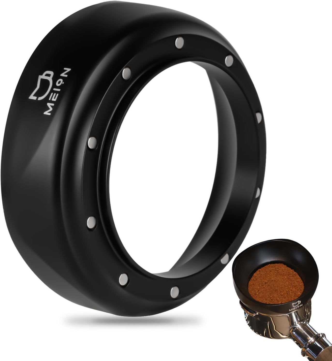 MEION 58mm Dosing Funnel, Magnetic Espresso Dosing Funnel Coffee Funnel Compatible with 58mm Portafilter, Espresso Tools Portafilter Funnel (58mm, Black)