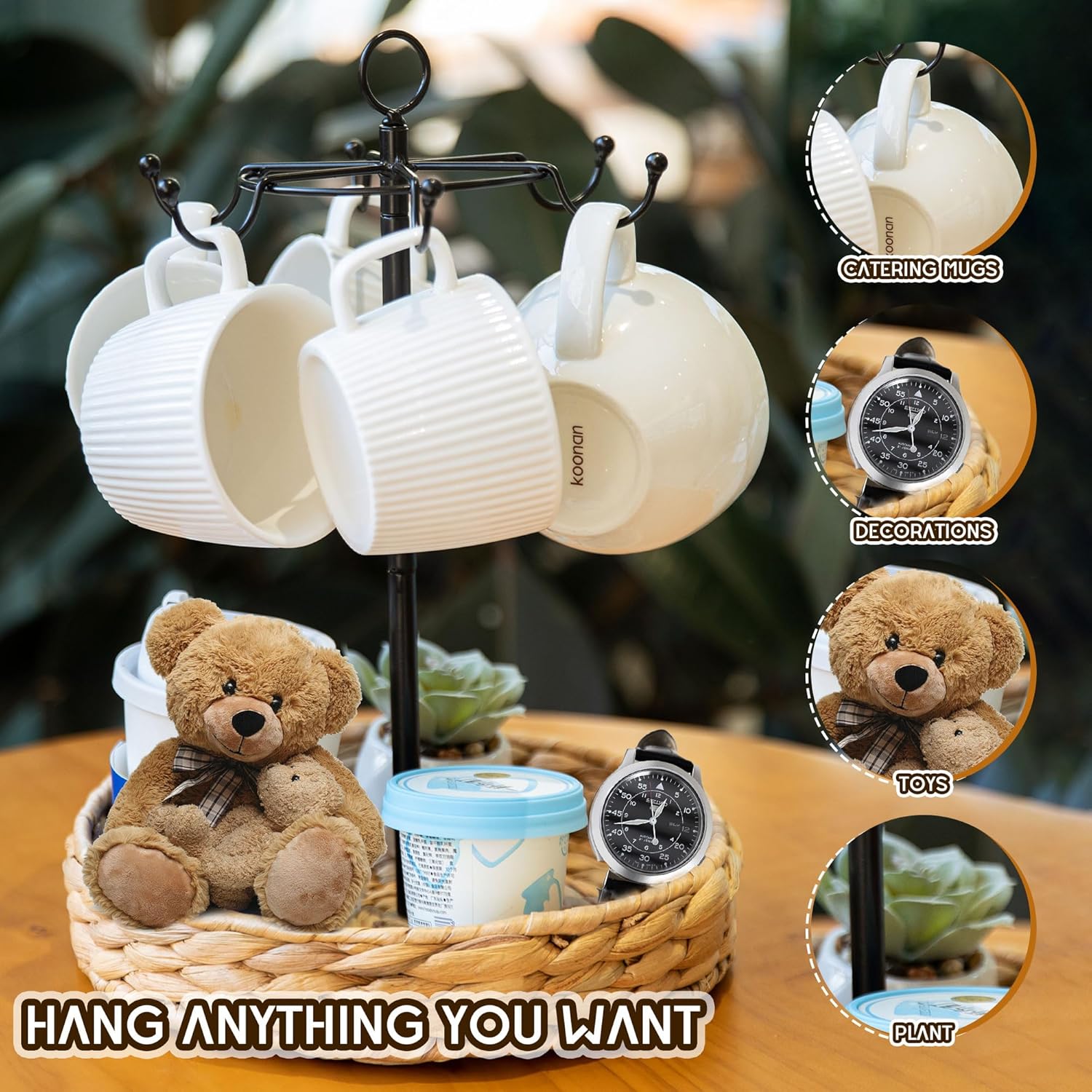 - 【Durable and Versatile】Mug rack stand for strong and sturdy, easy to clean, The maximum capacity of the metal hook can hold 6 mug holder. this coffee bar with metal is not just for coffee mug stand. It's perfect for storing creamer, sugar, coffee stand , ketchup, mustard pods, salt, pepper pods, cups, bowls, spoons, syrup and more.
