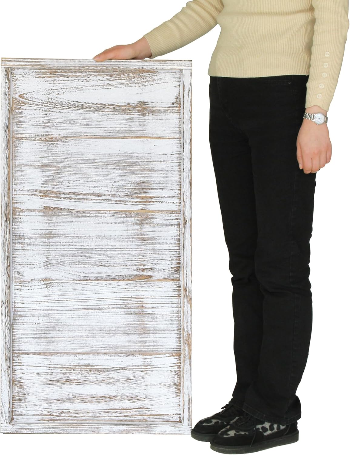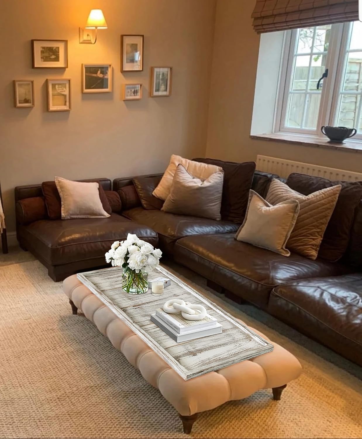 40"x20" Extra Large Long Rectangle Ottoman Table Tray - Rustic Wooden Serving Tray for Farmhouse Decorative Oversized Coffee Table Trays Living Room Kitchen Counter Breakfast White