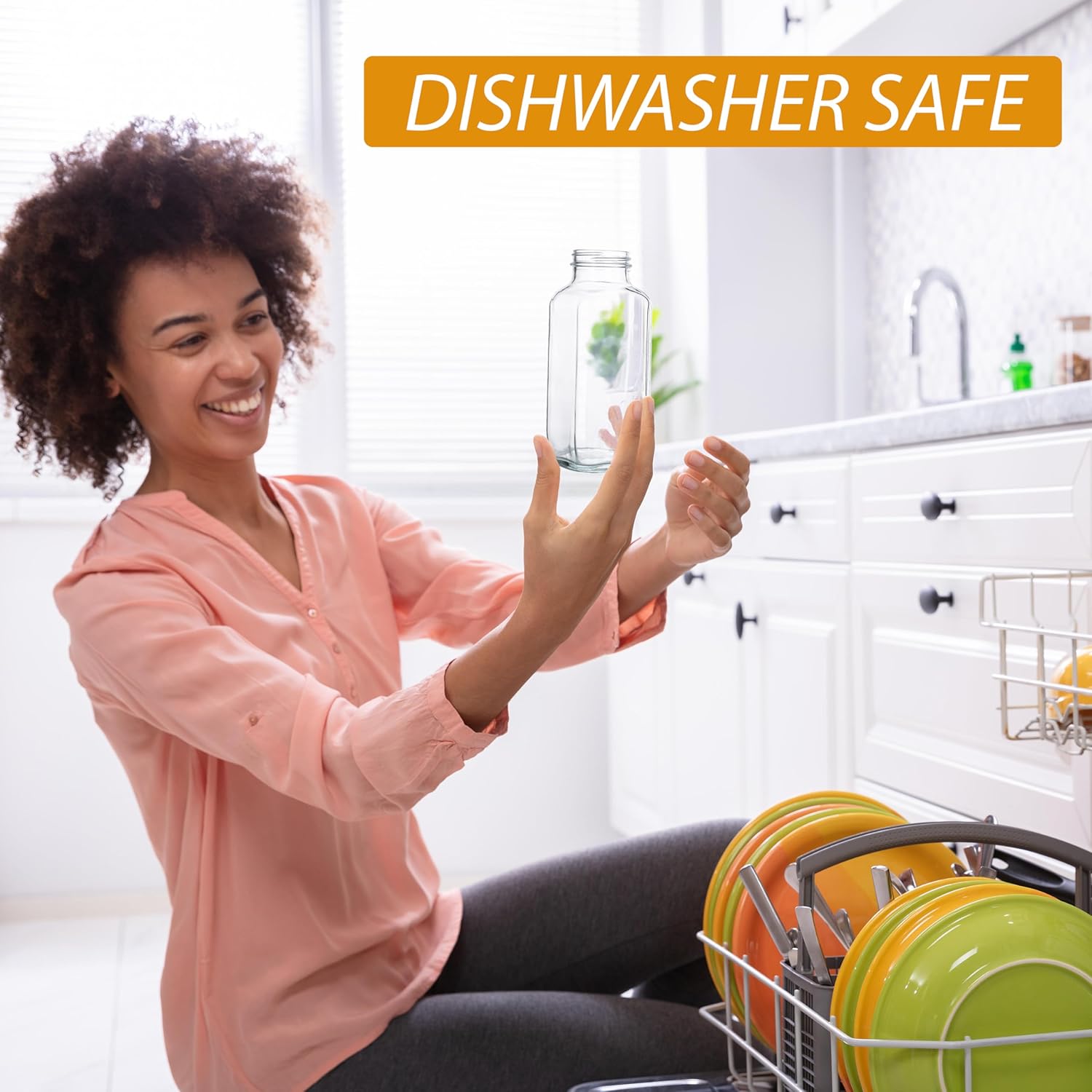 Juice Bottles with Lids, 16 Oz - Set of 8 - Clear Glass Jars with Caps - Reusable Empty Drink Containers for Juicing, Smoothies, Water, Milk, Kombucha Storage, Wellness Shots and More (8)