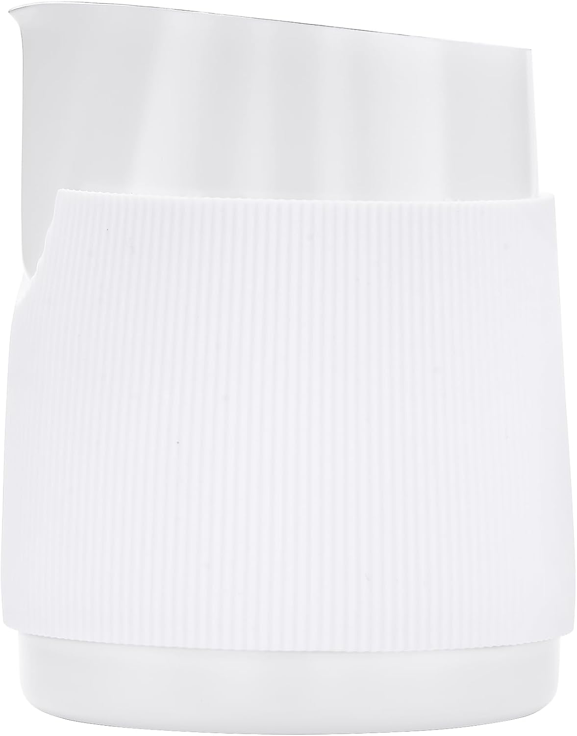 - HEAT-RESISTANT GRIP - Our milk frothing pitcher feels secure and balanced in your hand thanks to the white silicone heat-resistant grip. The ability to hold the milk jug any way, without the restriction of a handle.