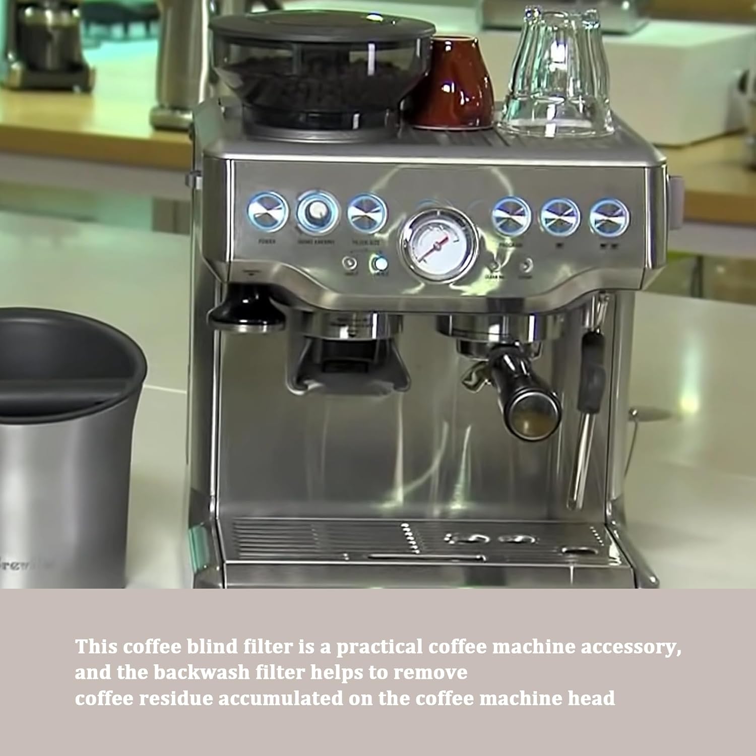 - 1.58mm Backflush Inser, Backflush Filter Espresso, Stainless Steel Back Flush Blind Filter Basket Fits for Breville Gaggia Classic and other Espresso Machines Espresso Cleaning Disc.