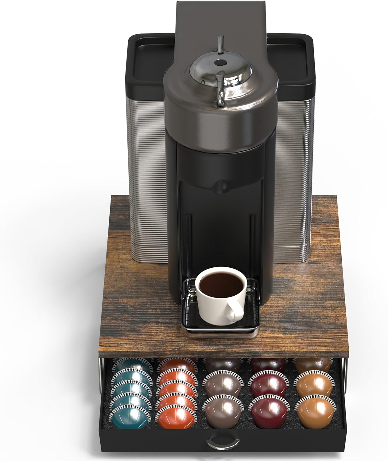 - [ Sliding Drawer Design ] The sliding drawer mechanism allows easy access to your coffee pods, making selecting and using them convenient.