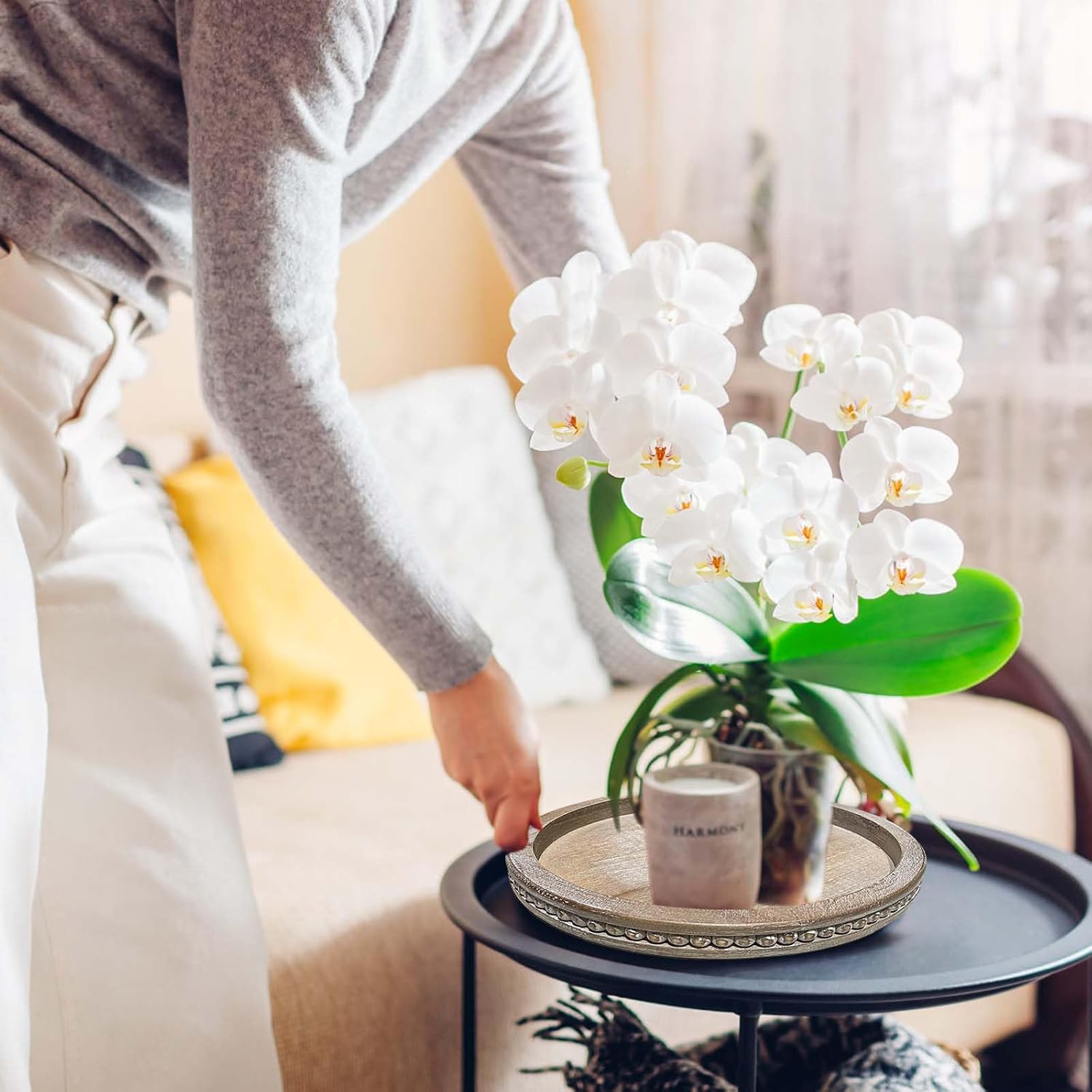 - [What you get]:You will receive a coffee table tray, which will meet your decoration needs. The round tray size is approx. 15.75in/40cm in diameter, 1.18in/3cm in height, which can be suitable for daily life appliances and decorations, bringing convenience to you.