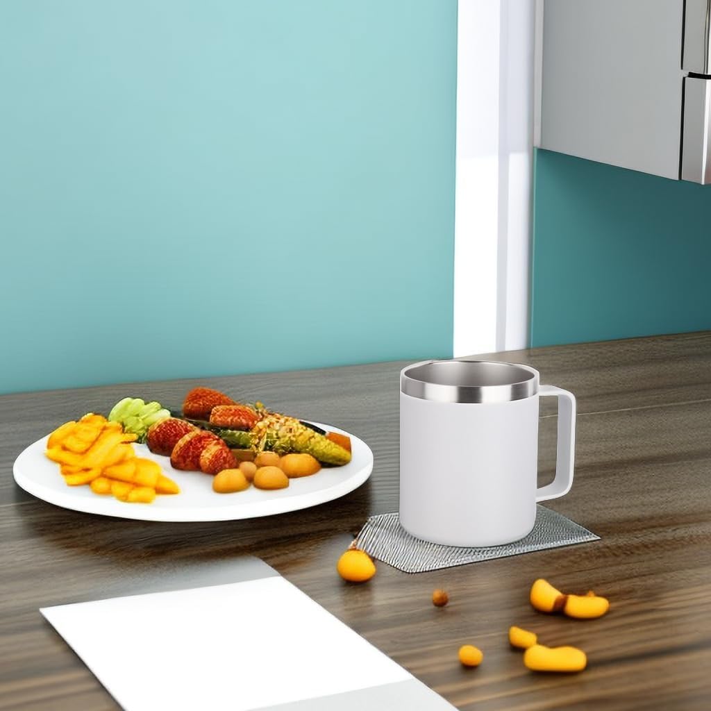 Volhoply 14oz Insulated Stainless Steel Coffee Mug with Lid Bulk 2 Pack,Double Wall Vacuum Travel Coffee Cup with Handle,Reusable Metal Cups Tumbler,Camping Mugs Keep Hot,Ideal Gifts(White,2)