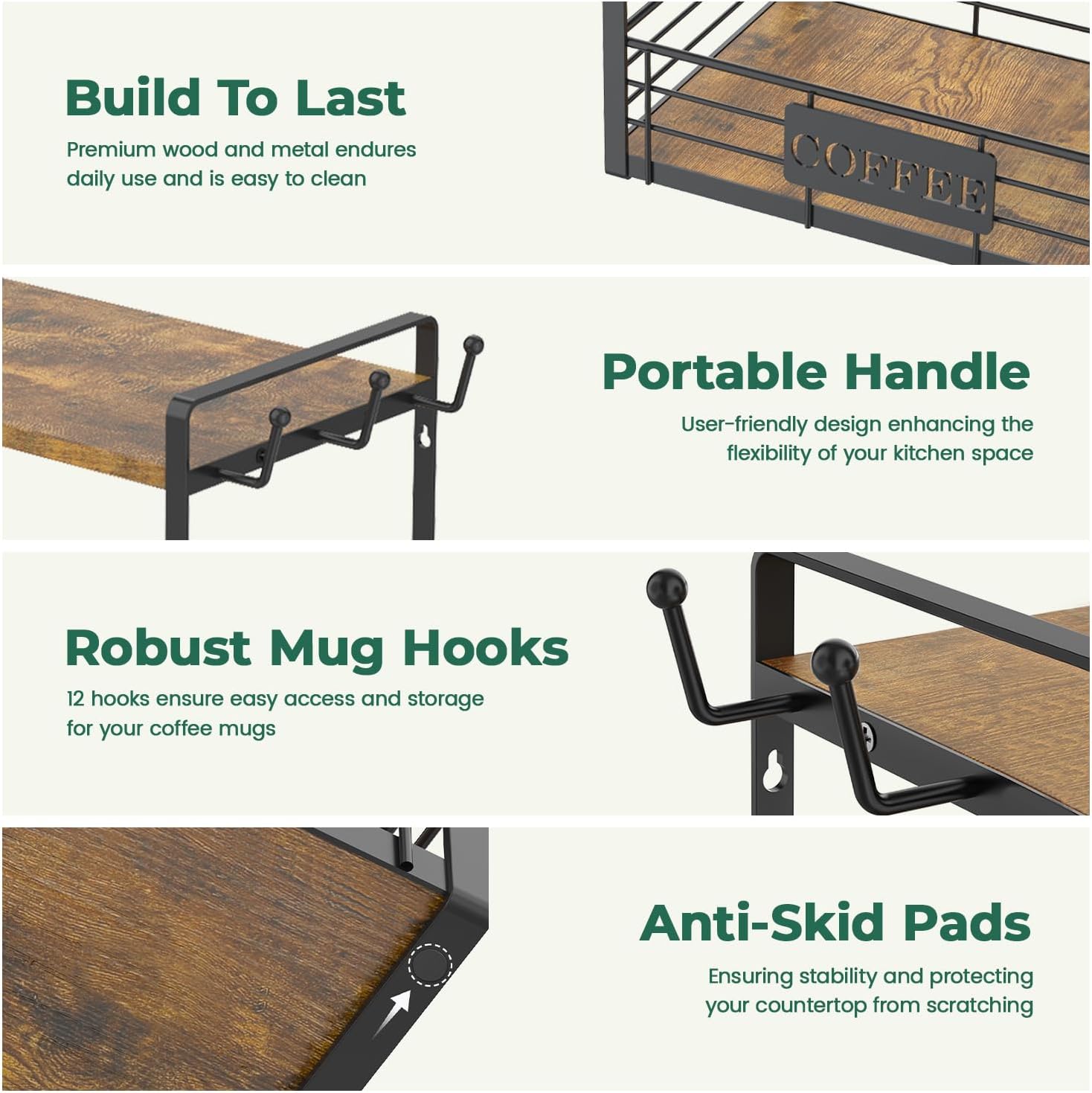 - Space-Saving Solution: Optimize your kitchen space with our compact yet capacious coffee mug rack organizer, perfect for streamlining any coffee station setup