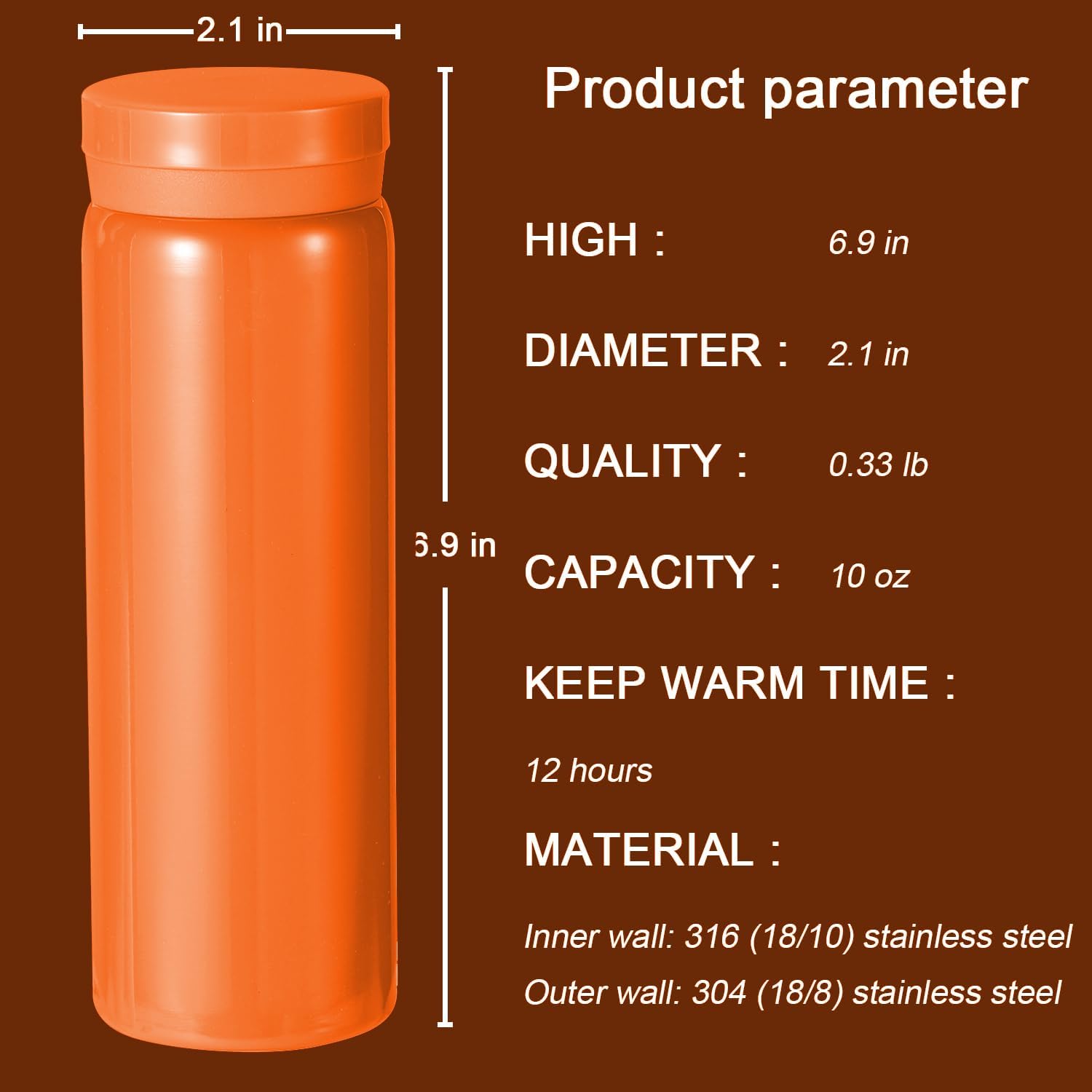 10oz Mini Water Bottle Stainless Steel Thermos Small Flask - Insulated Vacuum, Leak Proof, Keeps Drinks Hot/Cold - Ideal for Coffee, Tea, Water - Orange