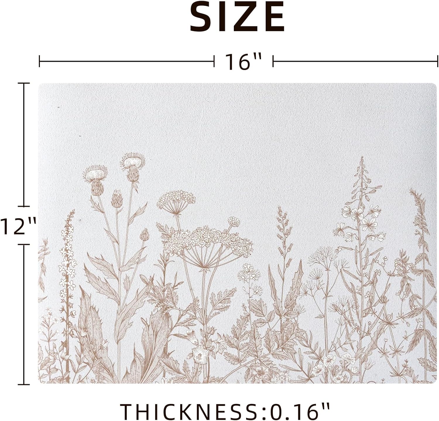 Dish Drying Mat, Absorbent Coffee Mat Rubber Backed, Soft Silicone Dish Drying Mat for Kitchen Counter or Sink for Kitchen Bathroom Coffee Bar (Plants, 12 x 16 Inches)