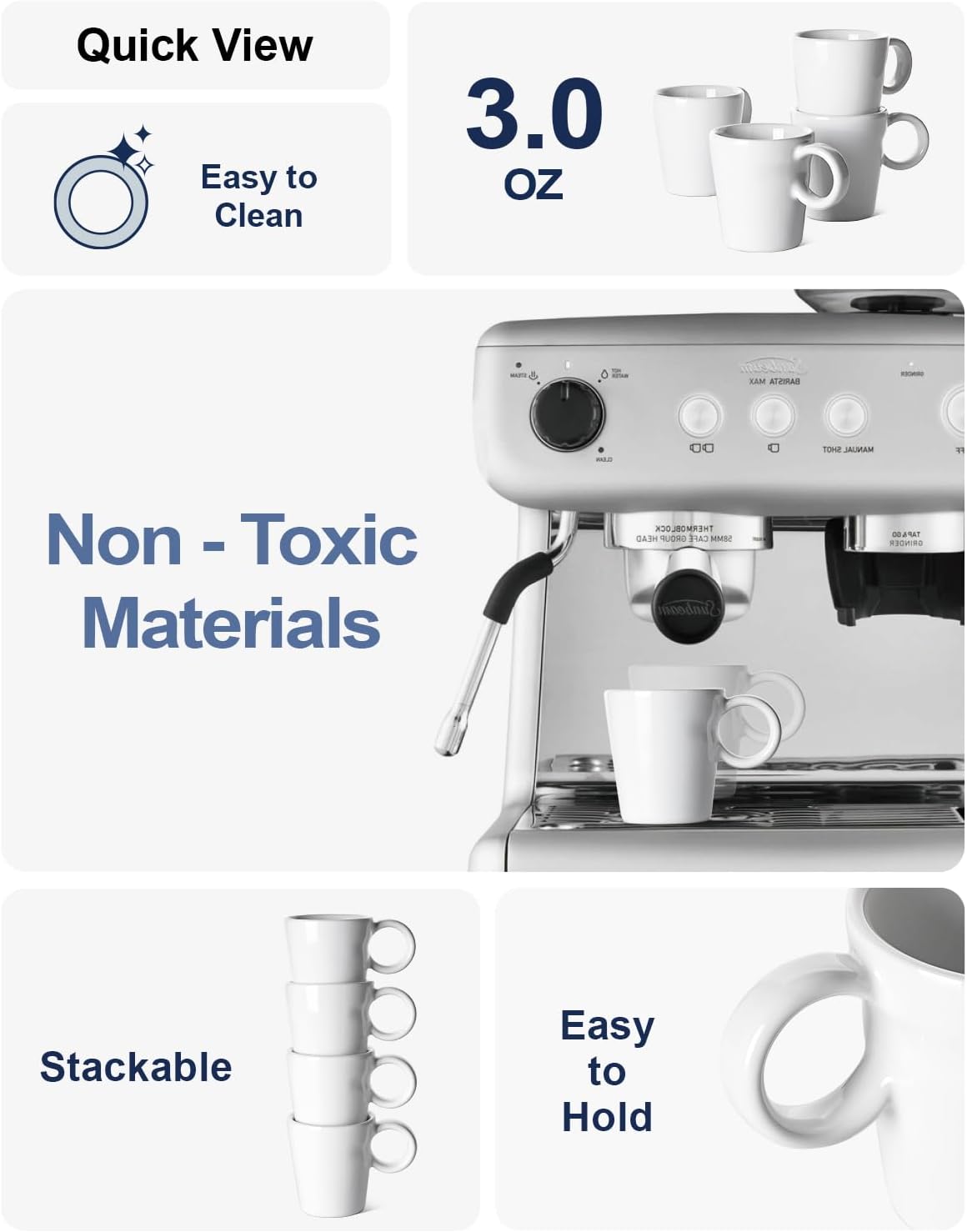 - Comfortable Grip: Enjoy the comfort of a secure handle with our espresso cups' meticulously designed grooves; Their stylish appearance and comfortable handling make them a pleasure to use every day