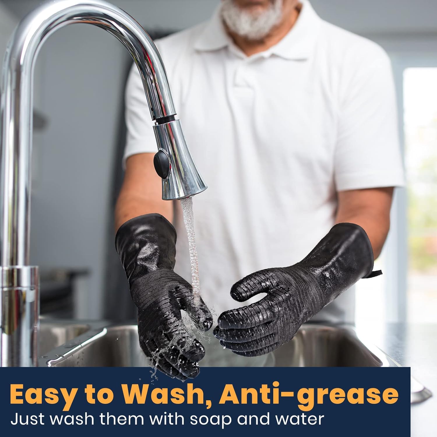 - Heat Resistance: 14-Inch 932°F Protection: Specially designed for extreme heat environments; Professional-grade silicone coating withstands grills, smokers and oven use; Extended sleeve length exceeds common kitchen gloves