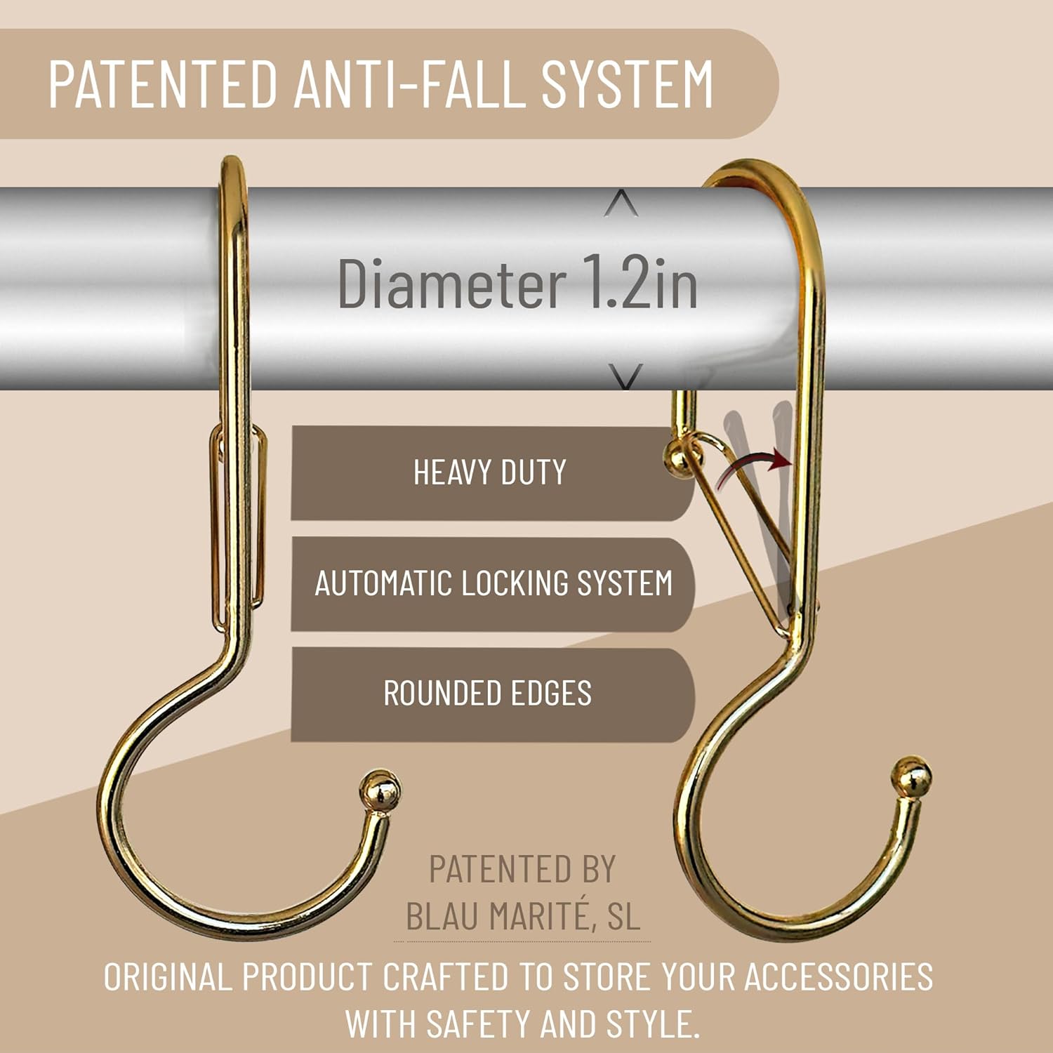 - PATENTED IN THE UNITED STATES: These hooks are equipped with a lock that prevents them from falling from the bar when hanging or taking off utensils or clothes.