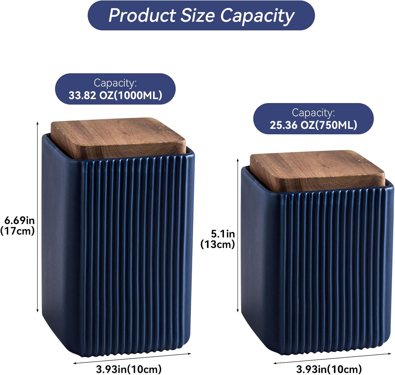 Ceramic Storage Jars Modern Elegant Highly Polished Airtight Storage Canisters with Lid Whiteware Food Stroage Jar for Kitchen Spice Tea Vanilla Sugar Coffee Beans (Blue-750ML)