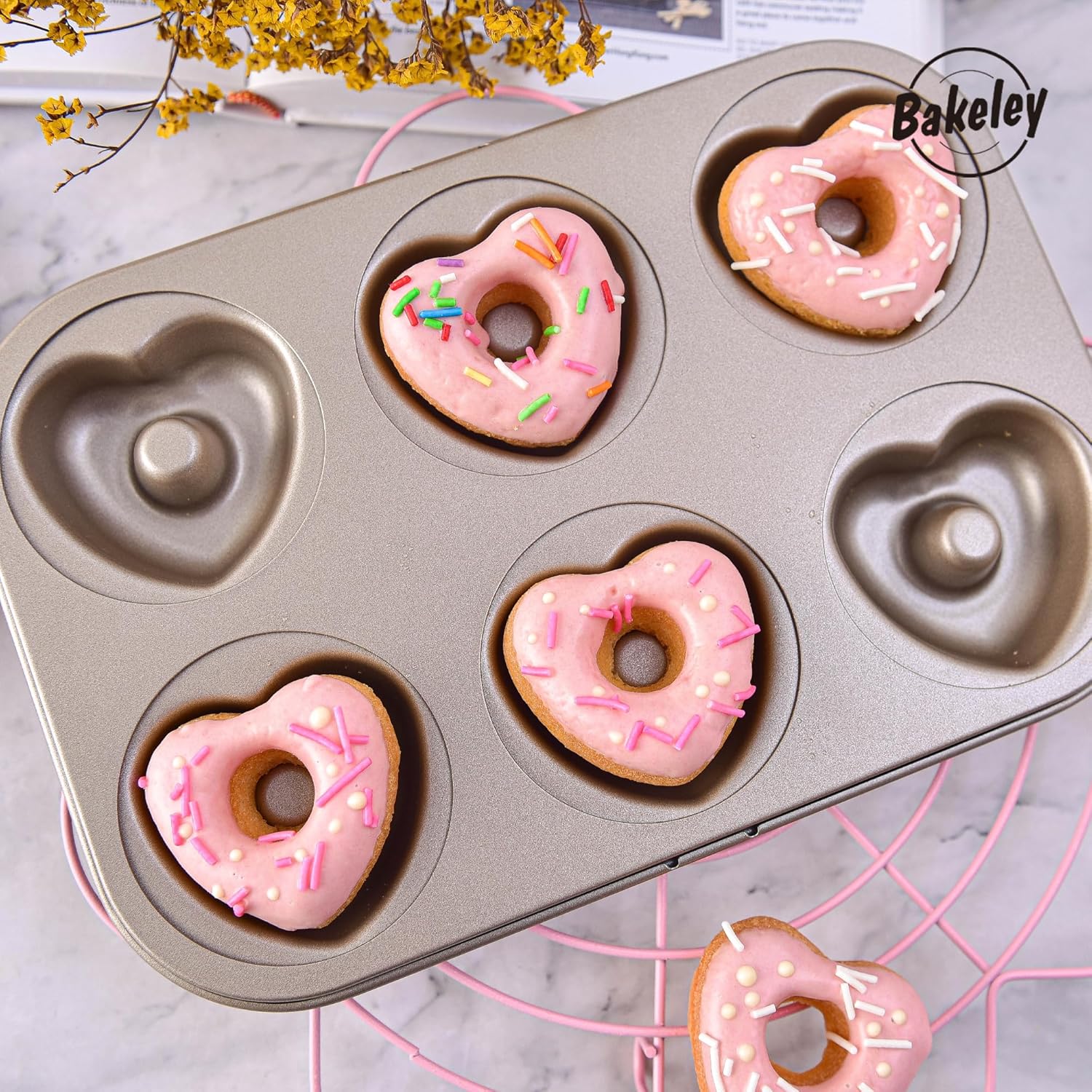 Heart Donut Pan, 6 Cavity Donut Mold Heavy Duty Steel Non-stick Heart Shaped Bund Pans Pattern Doughnut Bakeware for Oven Baking (Champagne Gold)