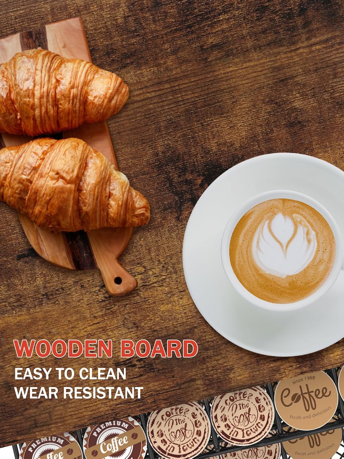 - Rustic and Elegant Design:The pod storage drawer wooden top will firmly support your coffee maker or coffee brewer, durable and effective in preventing deformation. New modern Iron Wood combination design style is more suitable for your kitchen, dorm countertop or office coffee bar,cafe