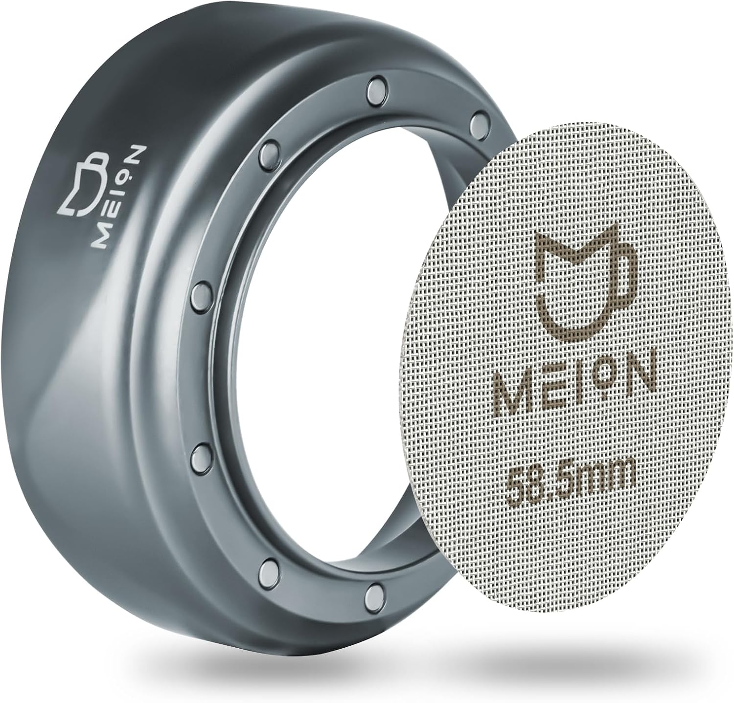 MEION 58mm Espresso Dosing Funnel and 58.5mm Puck Screen Set for 58mm Portafilters, Magnetic Coffee Portafilter Funnel, Reusable Espresso Puck Screen, Espresso Tools Accessories (Silver, 58mm)