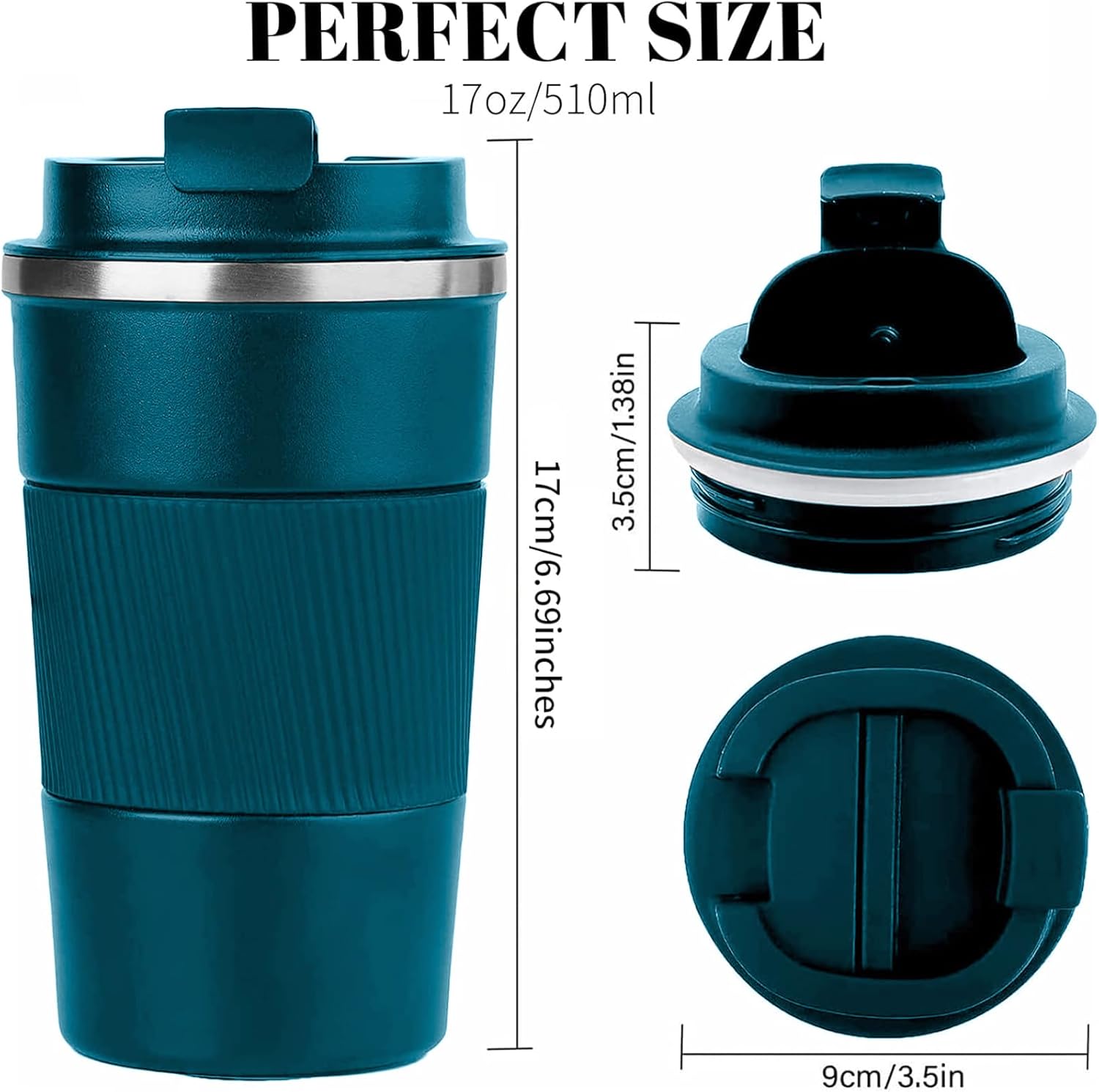YINBAOGE Insulated Travel Coffee Mug Spill Proof Leak Proof Pobtable To Go Camping Stainless Steel Coffee Tumbler Reusable Coffee Cups with Lids Thermos for Hot and Cold Drink (Blue, 17 OZ)