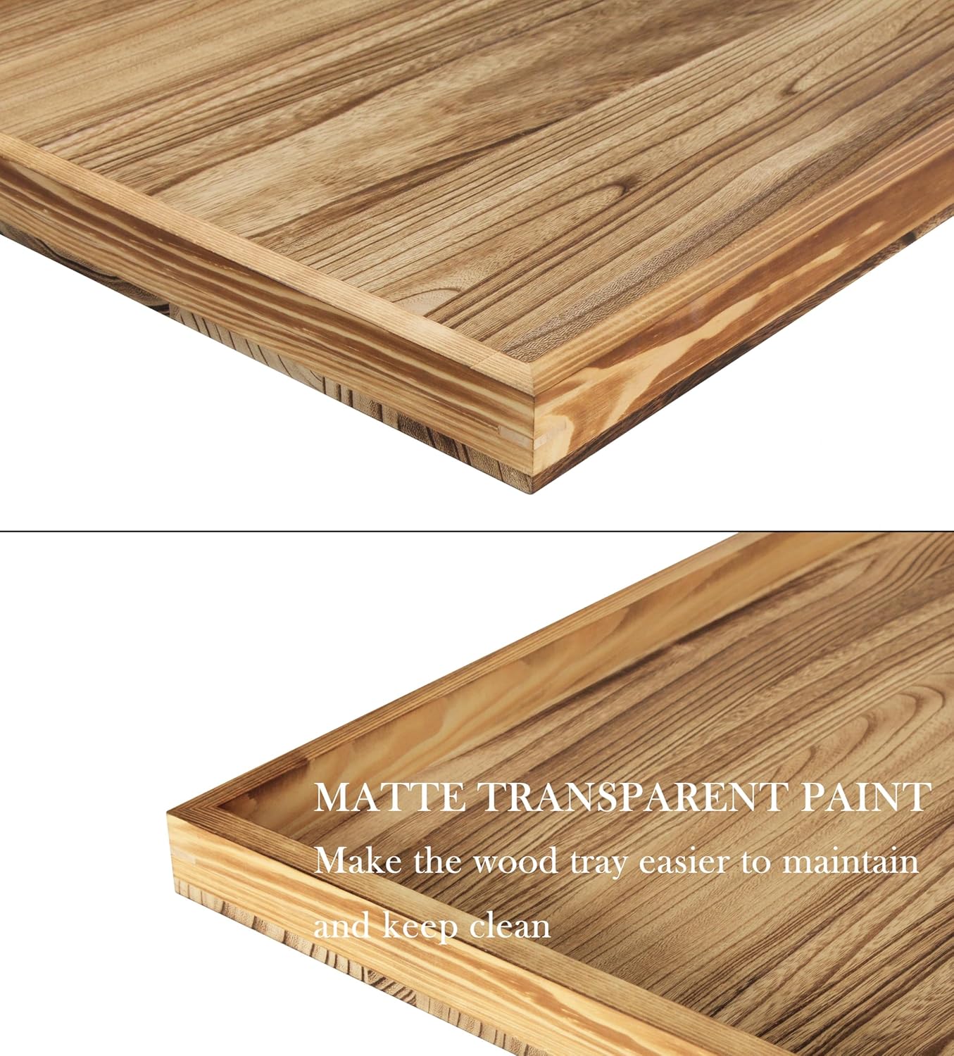 - 🌷 HIGH QUALITY - Our extra large rustic wooden serving tray is made of sustainably sourced solid hardwood material and finished with matte transparent paint, make the wood tray easier to maintain and keep clean