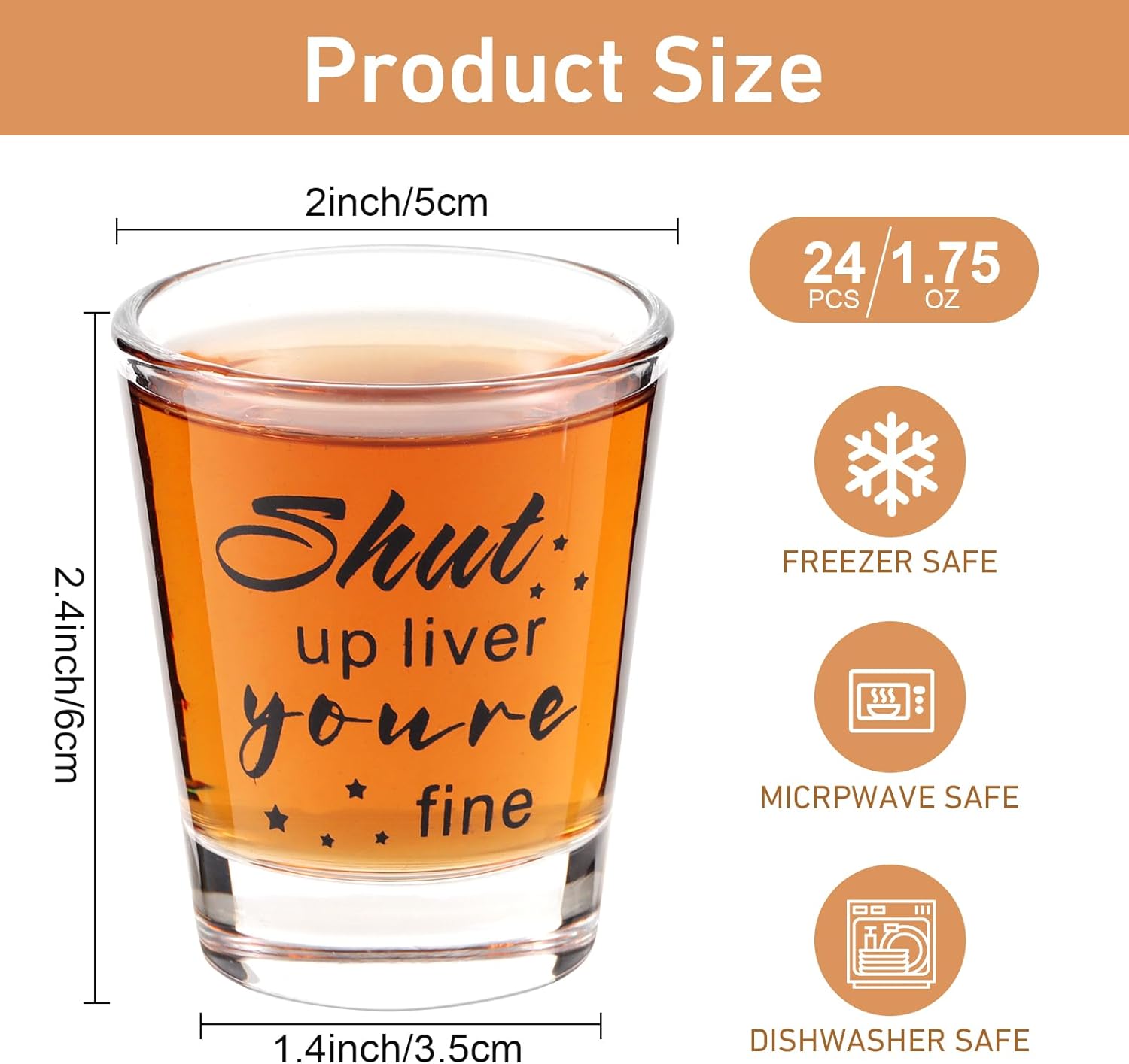 Kolewo4ever 24 Pieces Funny Friends Shot Glasses Funny Friends Shot Glasses Clear Glass Cups with Heavy Base for Adult Small Glass Shot Cups 1.75 oz Shot Glass for Best Friend
