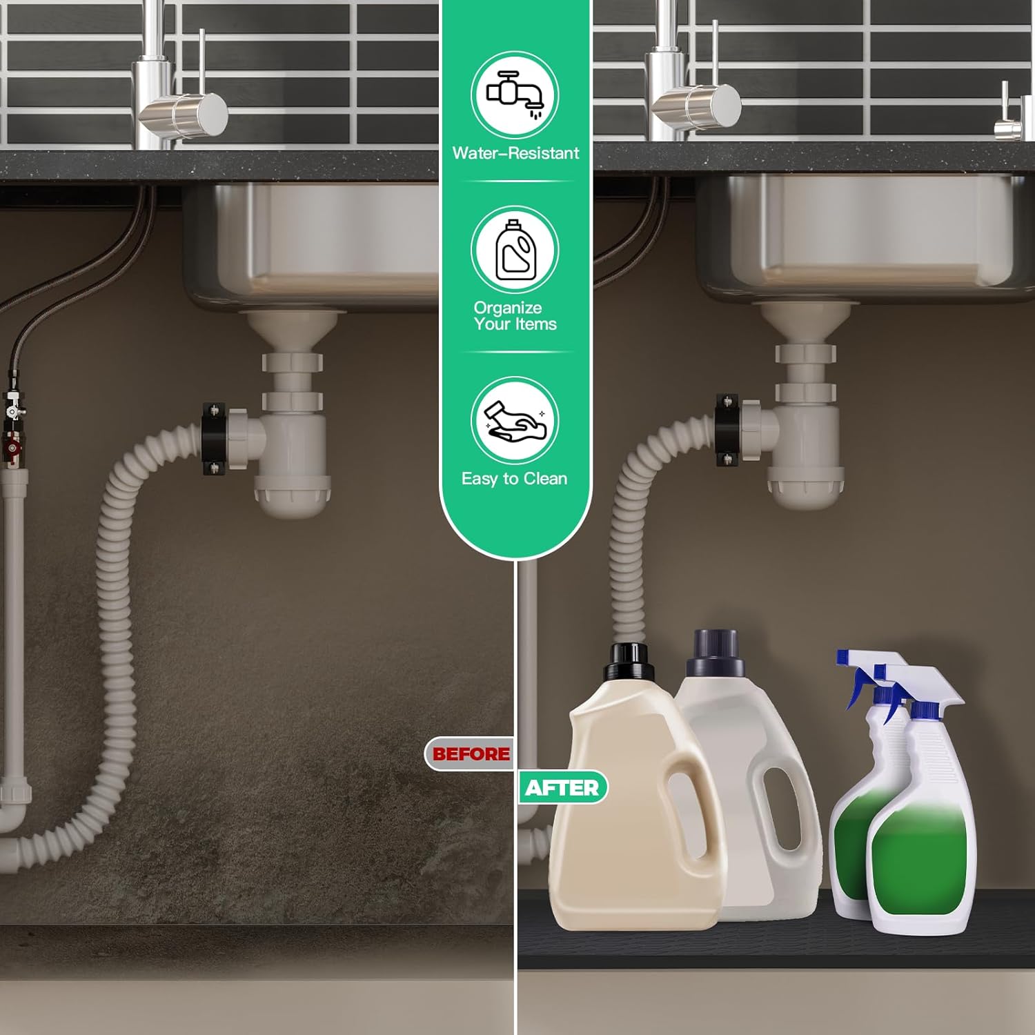 - Compatible Sizes: The TRZZ under sink mat measures 34" x 22" with a 0.6-inch depth to effectively handle water from cabinet leaks; not suitable for cabinets smaller than 34" x 22"