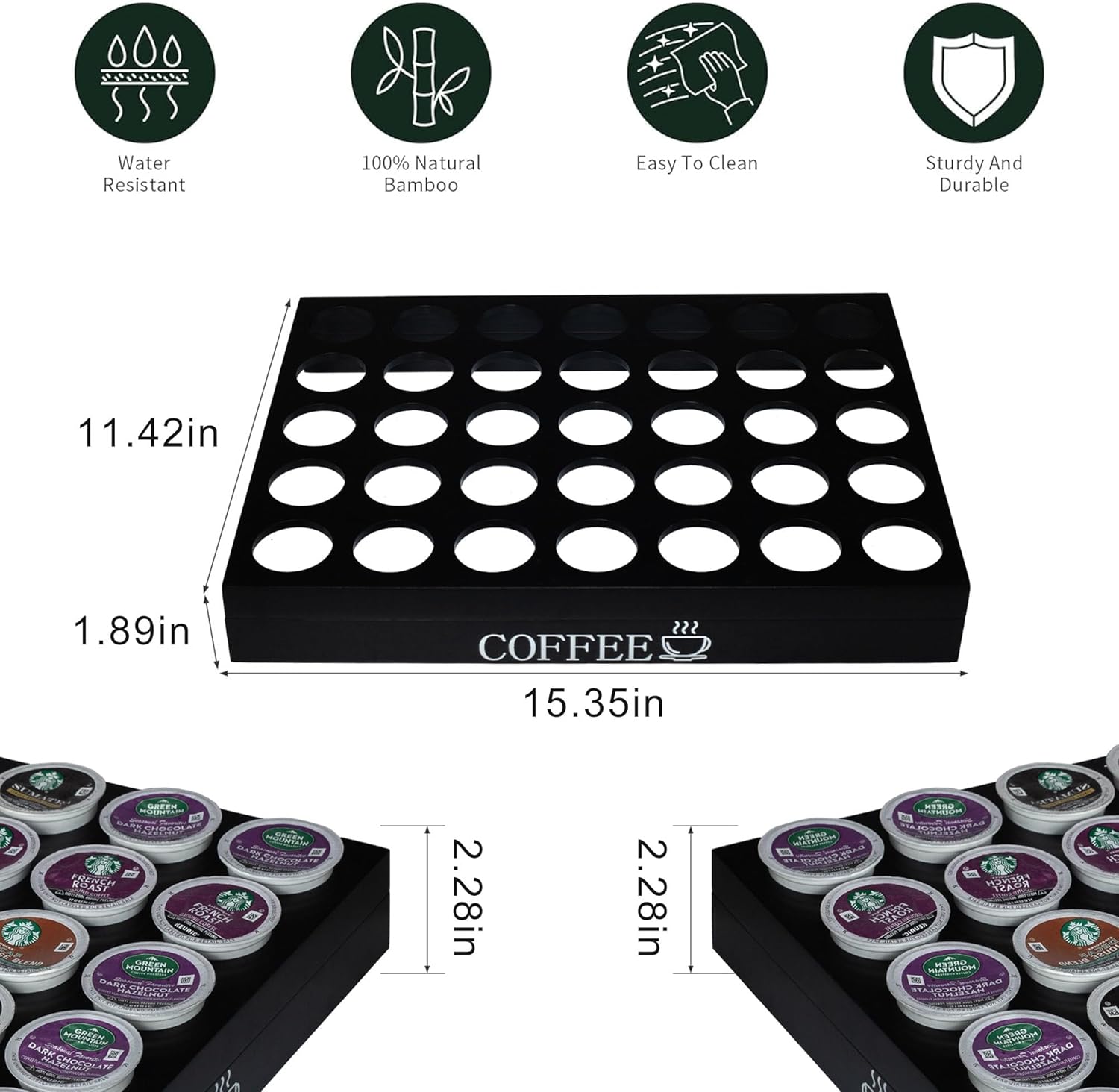 MinBoo BamBoo k cup holder Drawer or Countertop k cup Organizer Coffee Pod Holder Hold 35 Coffee Pod Storage Kcup coffee pods holder for coffee station Office and Kitchen k cup storage,Black