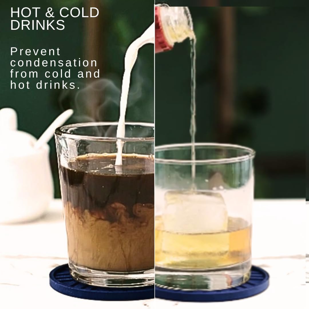 - NO MORE PUDDLES - Our drink coasters have elegant, colorful, aesthetic, funny, and Navy Blue grooved patterns that collect condensation from your cold drinks. Now you don't have to worry about liquid spilling over into your table or teal desk.