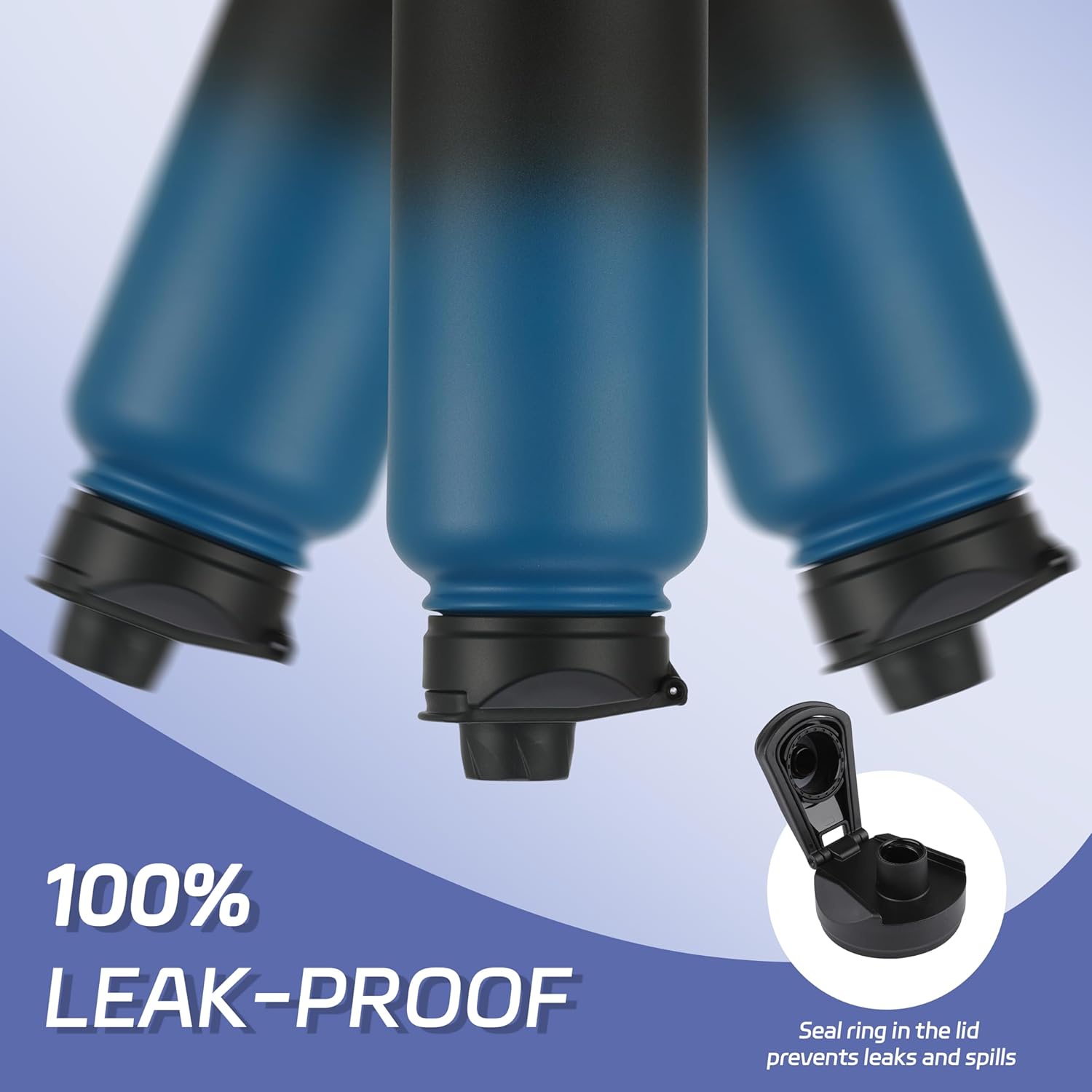 HASLE OUTFITTERS 32 oz Insulated Water Bottle Stainless Steel Double Walled Vacuum Sports Water Bottle with 2 Lids (Straw and Spout Lid) for Gym Camping Hiking(Blue Black Gradient,1)