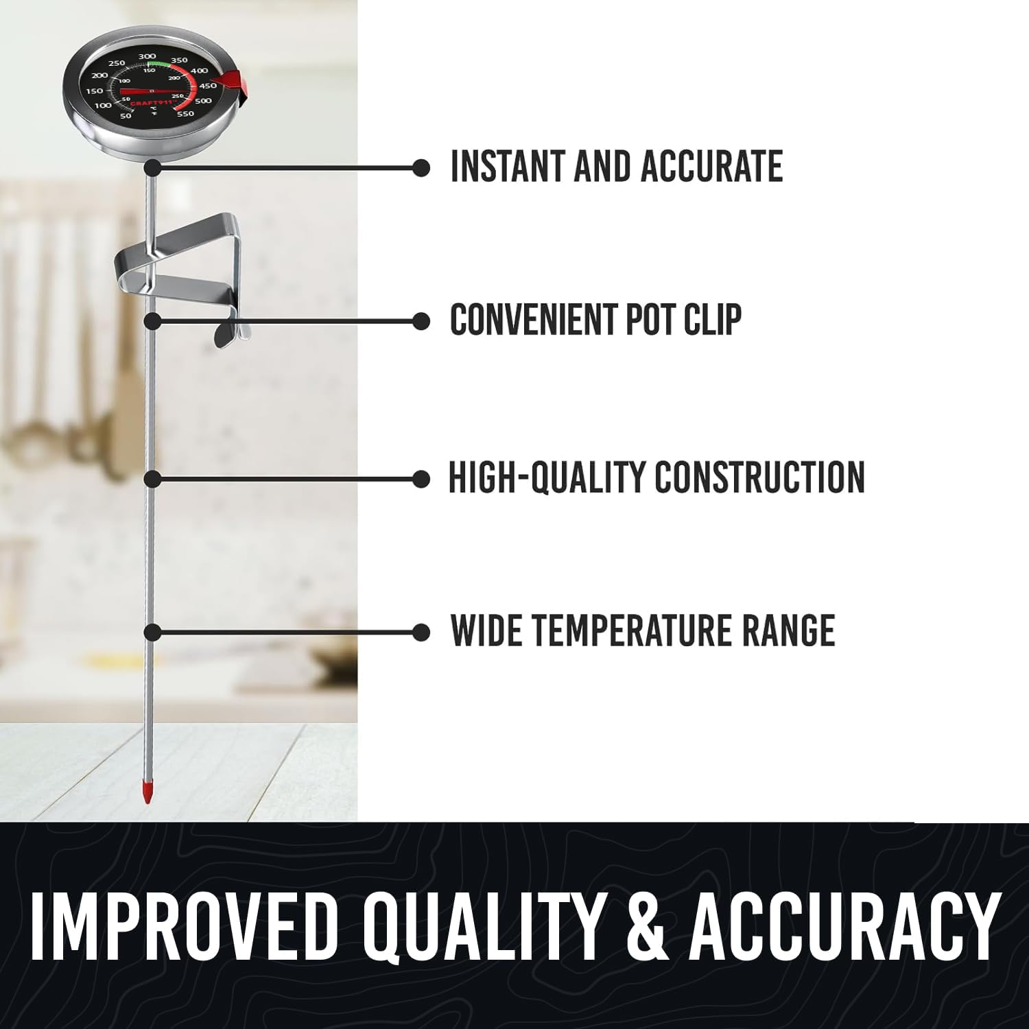 - REAL LIFETIME WARRANTY --- At Craft911, we're committed to providing our customers with high-quality products and exceptional customer service. Any issue with the instant-read deep fry thermometer we will replace it at no cost. This deep fry thermometer is also known as a candy thermometer, cooking thermometer, oil thermometer for frying, kitchen thermometer, and candy thermometer for candy making. Shop confidently at Craft911, knowing your satisfaction is our top priority.