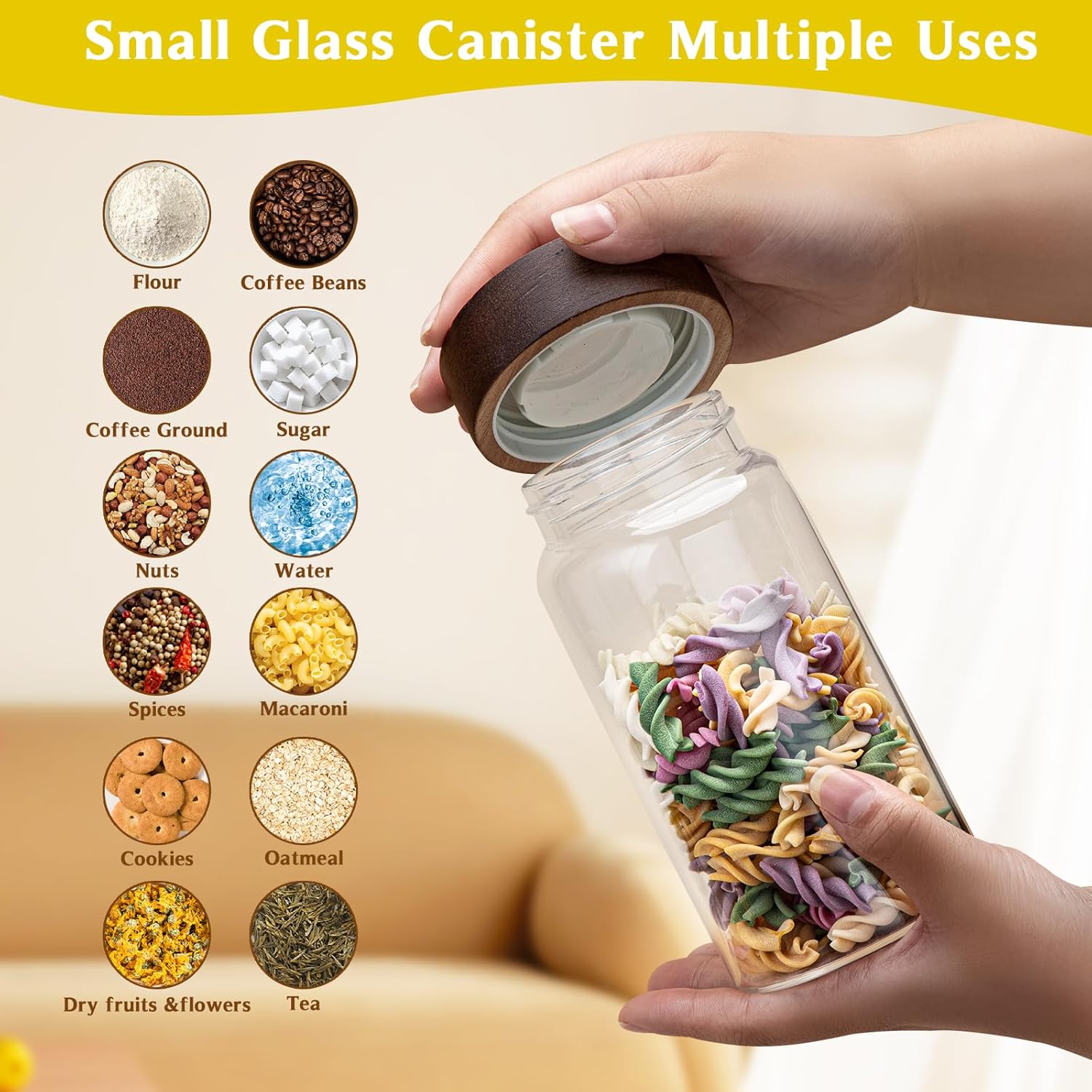- 【STYLISH & PRACTICAL DESIGN】: Small Glass food canister for kitchen counter are expertly designed with transparent crystal glass,easy to see what is inside, screw airtight lids are convenient to rotate the lid to open,especially suitable for parties, afternoon tea, dining tables, festivals, baking,outdoor gardens, restaurants, hotels to display.All materials are BPA-free, safe and non-toxic.Easy to clean and carry.