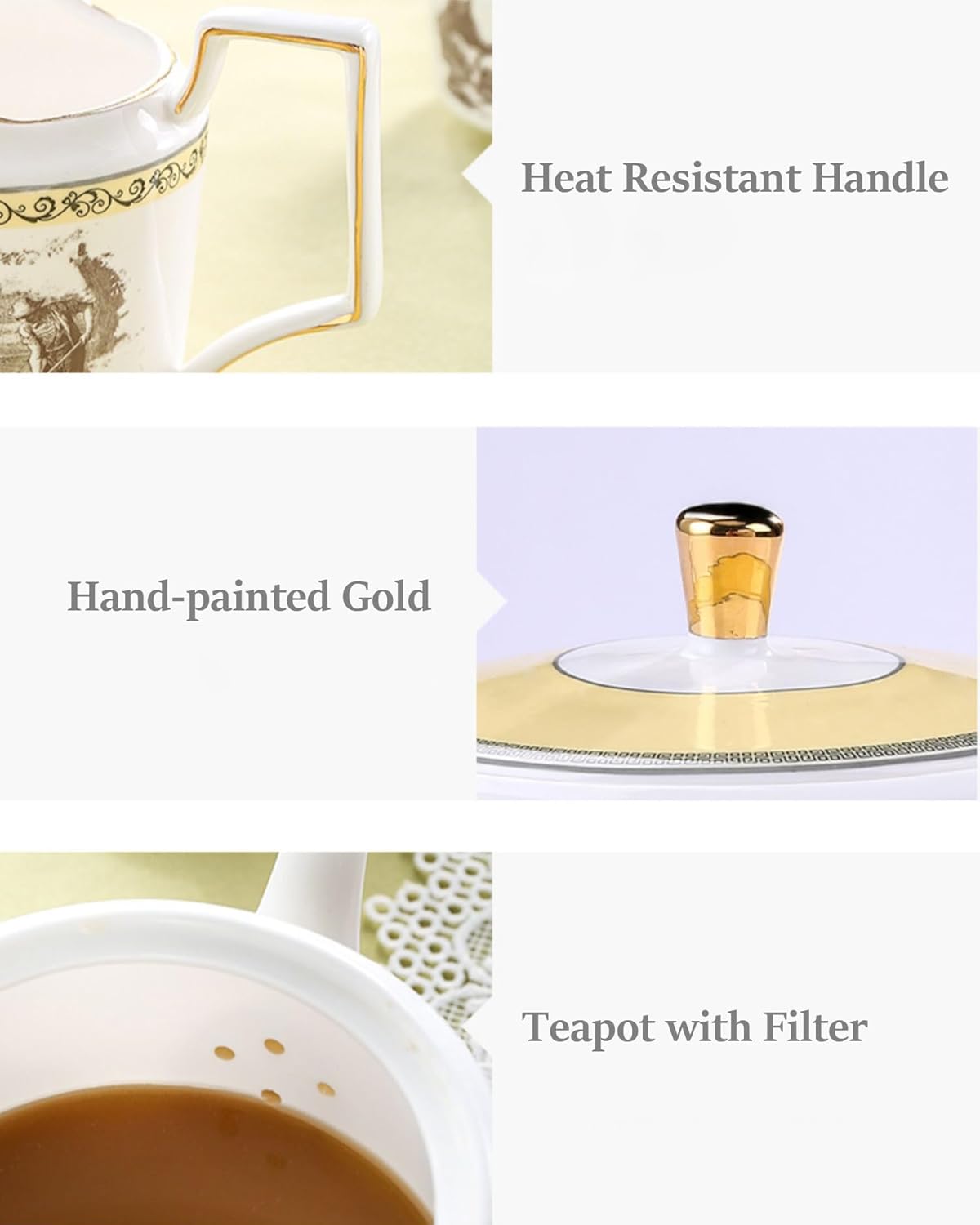 - Gift of relaxation: Beautiful gift for Christmas,mother's Day,teacher's Day, gifts for women,gifts for Adults. Surprise and delight your loved ones with our stunning tea set, featuring intricate details and a timeless design that will add a touch of sophistication to any tea party or gathering.
