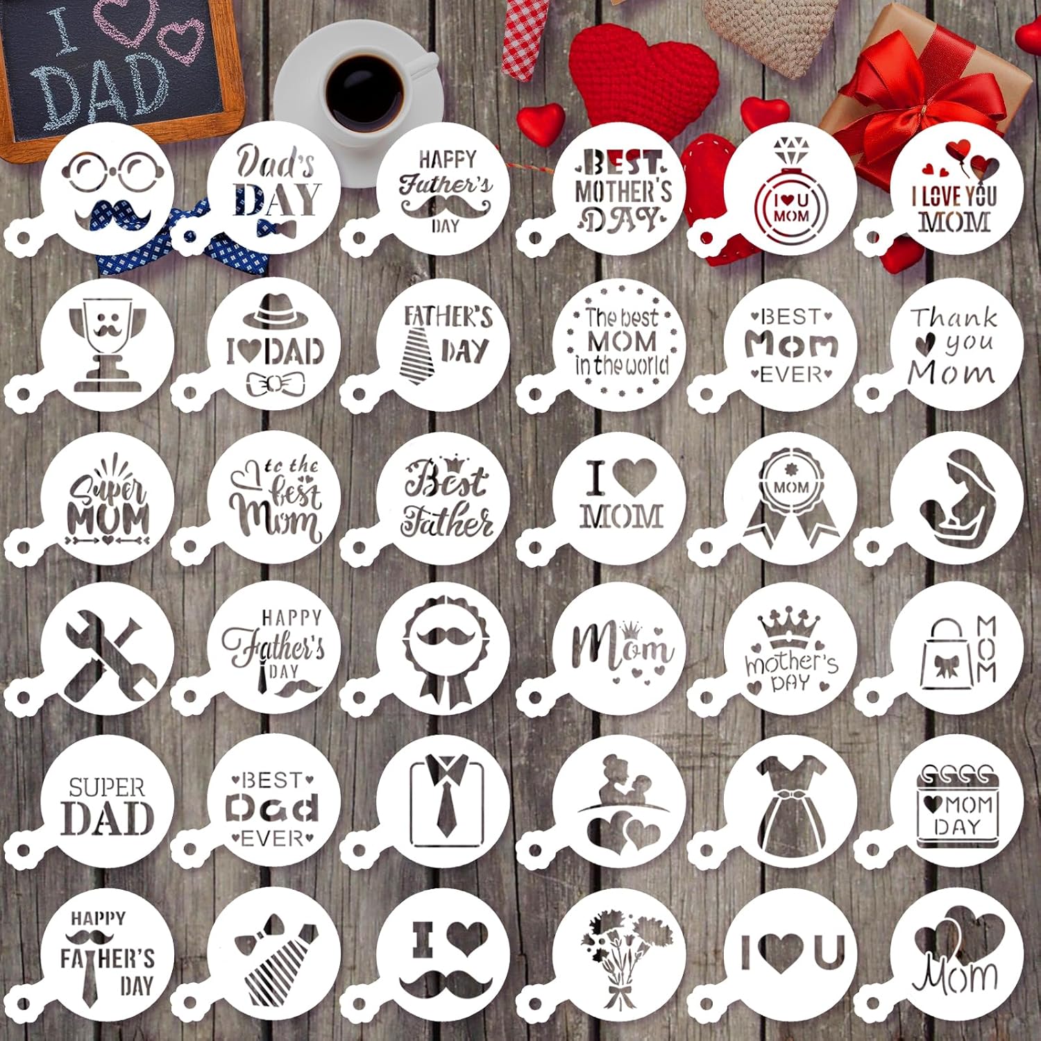 JULBEAR 36 Pieces Reusable Mother's Day Father's Day Cookie Cake Stencils Templates Mold Tools for Mother's Father's Day Birthday Wedding Party Royal Icing Cake Coffee Dessert Decoration Supplies