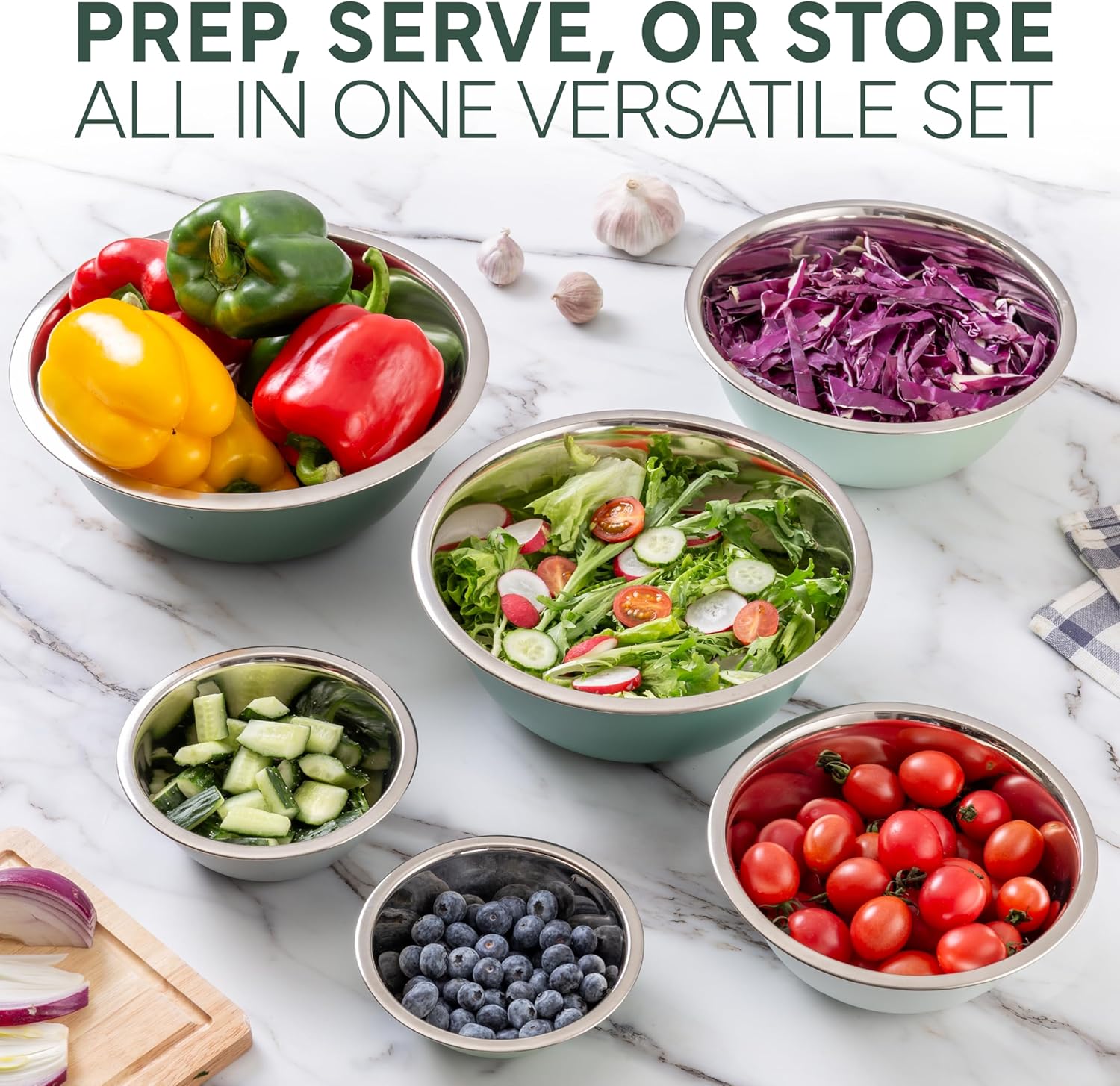 COOK WITH COLOR Stainless Steel Mixing Bowls Set - Nesting Bowls, 6 Pieces, Green
