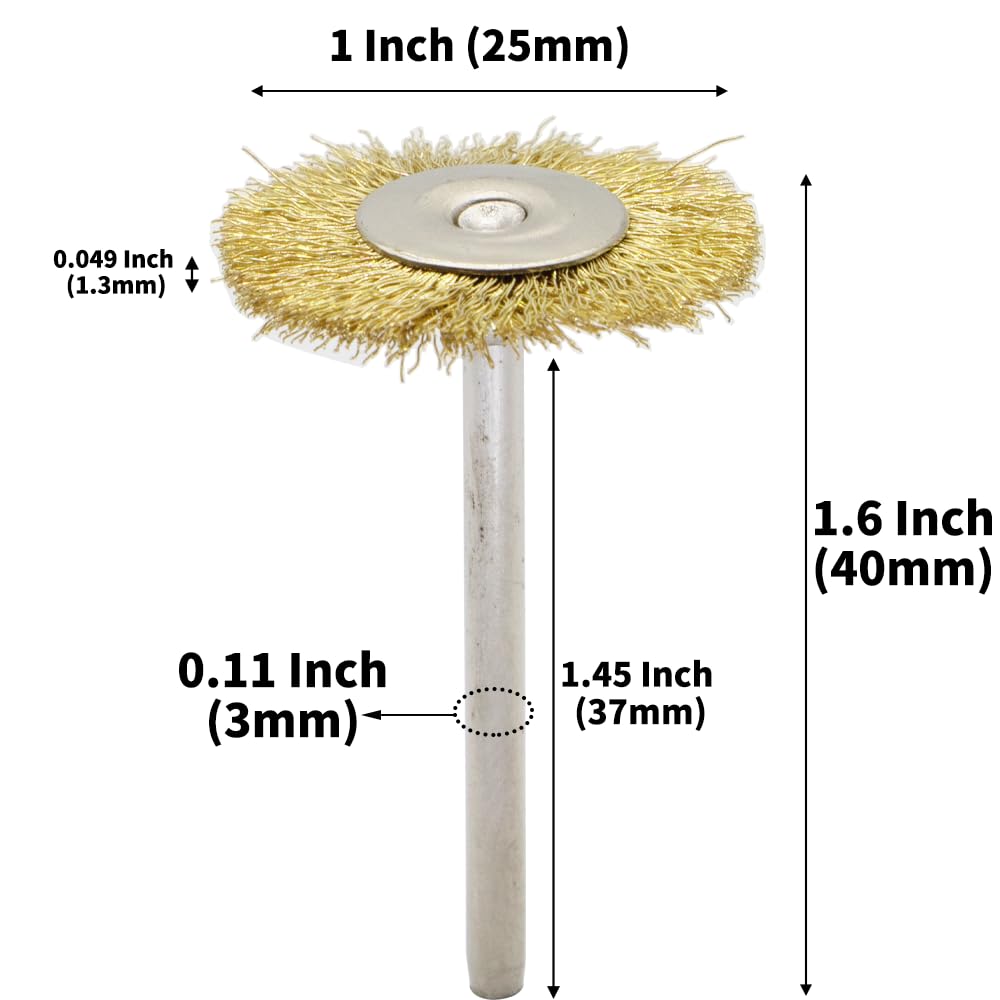 45-Piece Brass Wire Brush Set - Metal Rust Removal, Polishing, Cleaning - 1/8″ (3mm) Shaft - Removes Burrs, Dust, and Oxide Layer - Handles Rough Surfaces - Rotary Tool Accessories