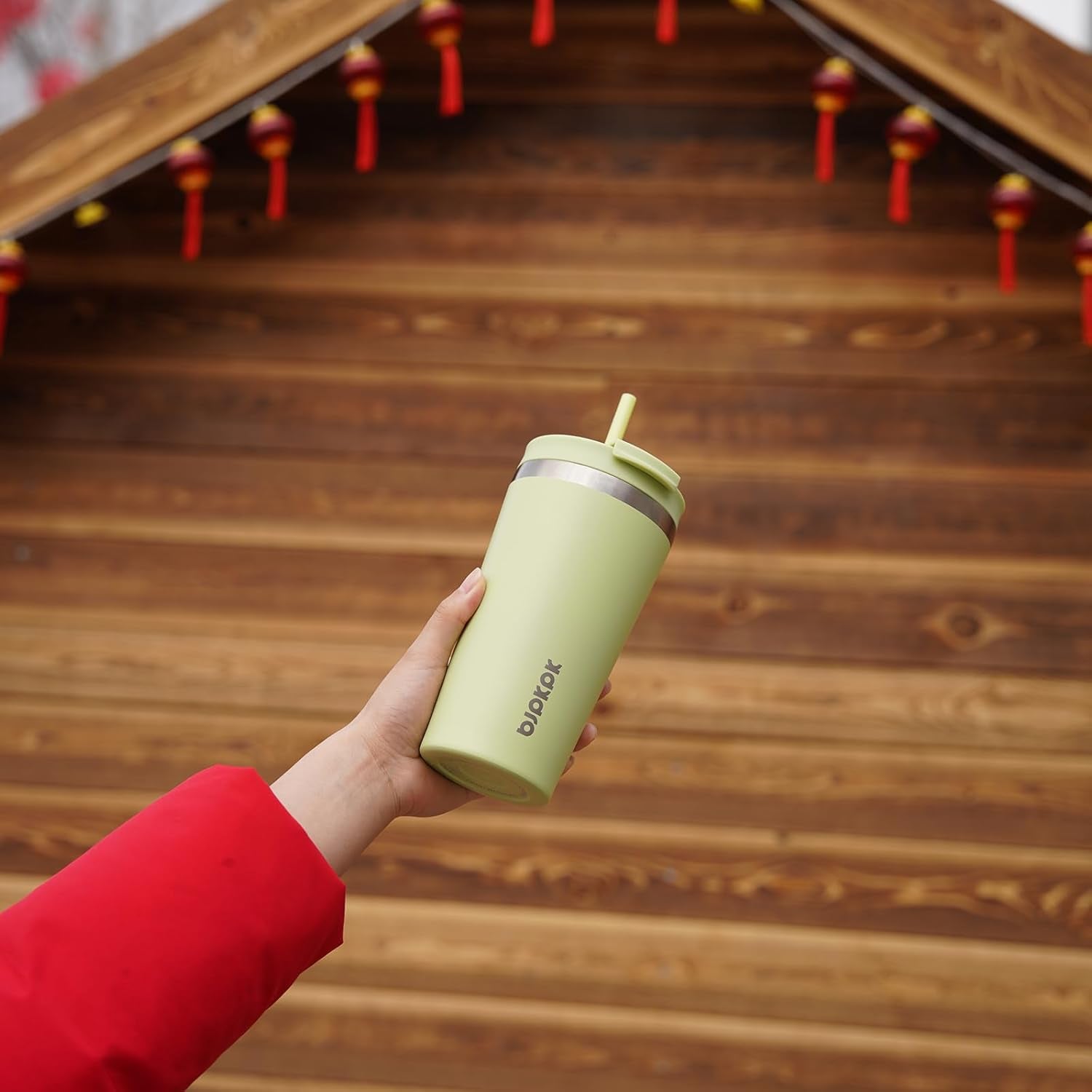 BJPKPK 18oz Insulated Tumbler With lid And Straw Stainless Steel Tumblers Travel Coffee Mug Reusable Thermal Cup,Macaron Green
