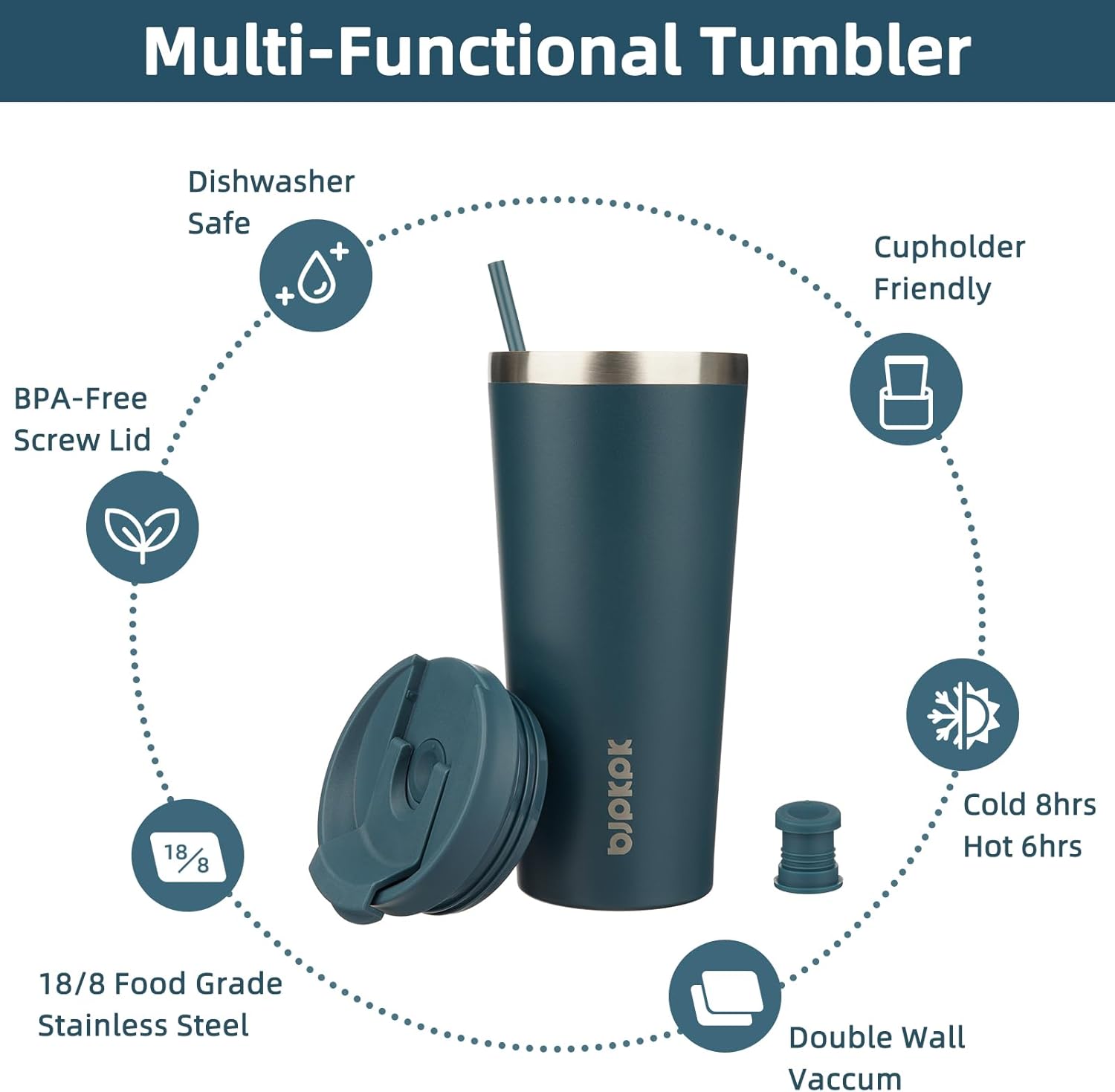 BJPKPK 22oz Stainless Steel Insulated Tumbler With lid And Straw Travel Coffee Thermal Tumblers Cup For Women And Men,Navy Blue