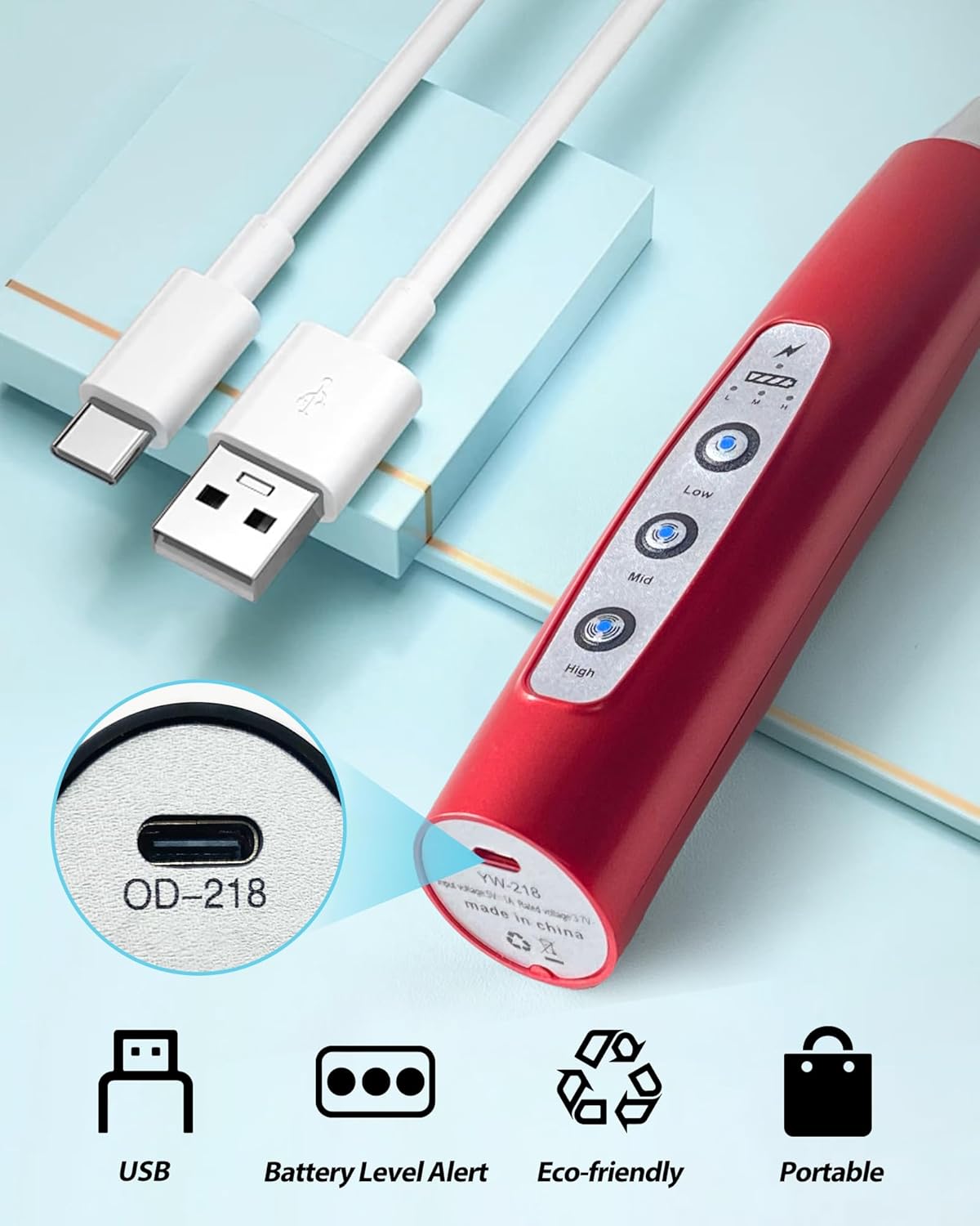 - Special Feature : Adjustable Speed Control, Ergonomic Handle, Indicator Light, Rechargeable