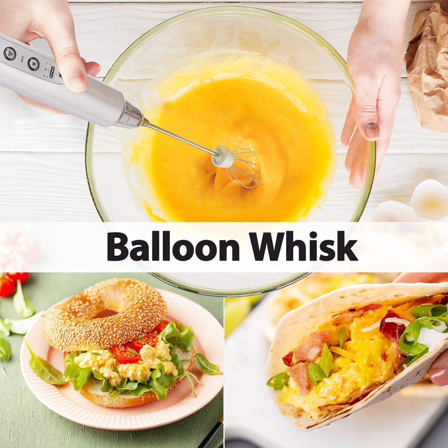 Milk Frother Rechargeable Handheld-Electric Whisk 3 Speed Adjustable, Coffee Frother Wand with 3 Stainless Whisks, Electric Foam Maker, Drink Mixer Blender for Latte Cappuccino Matcha Egg