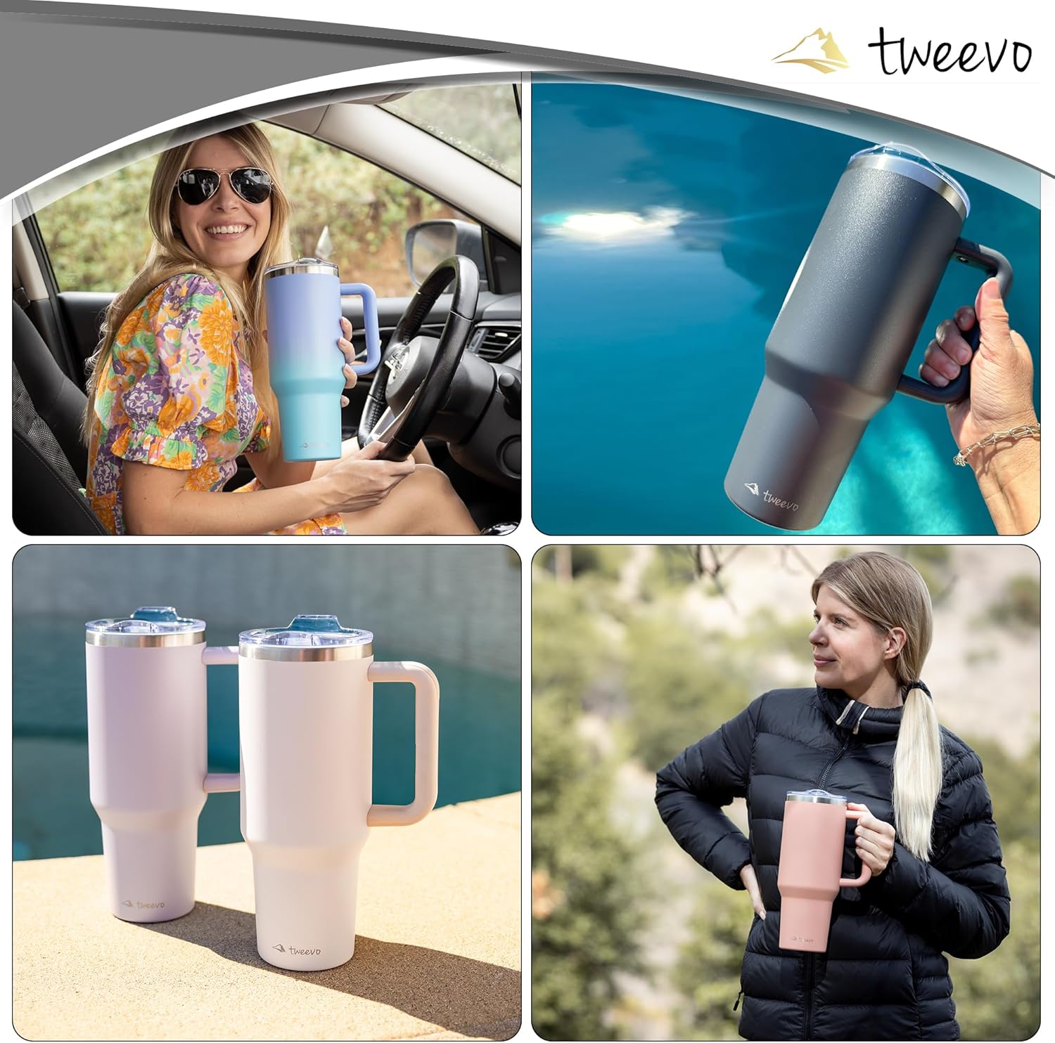 - Premium Stainless Steel Construction: Crafted from 18/8 food grade stainless steel, this 40 oz tumbler with handle and straw ensures safety and durability. The double-wall vacuum insulation retains the temperature of your drinks for extended periods, keeping them cold or hot as desired.