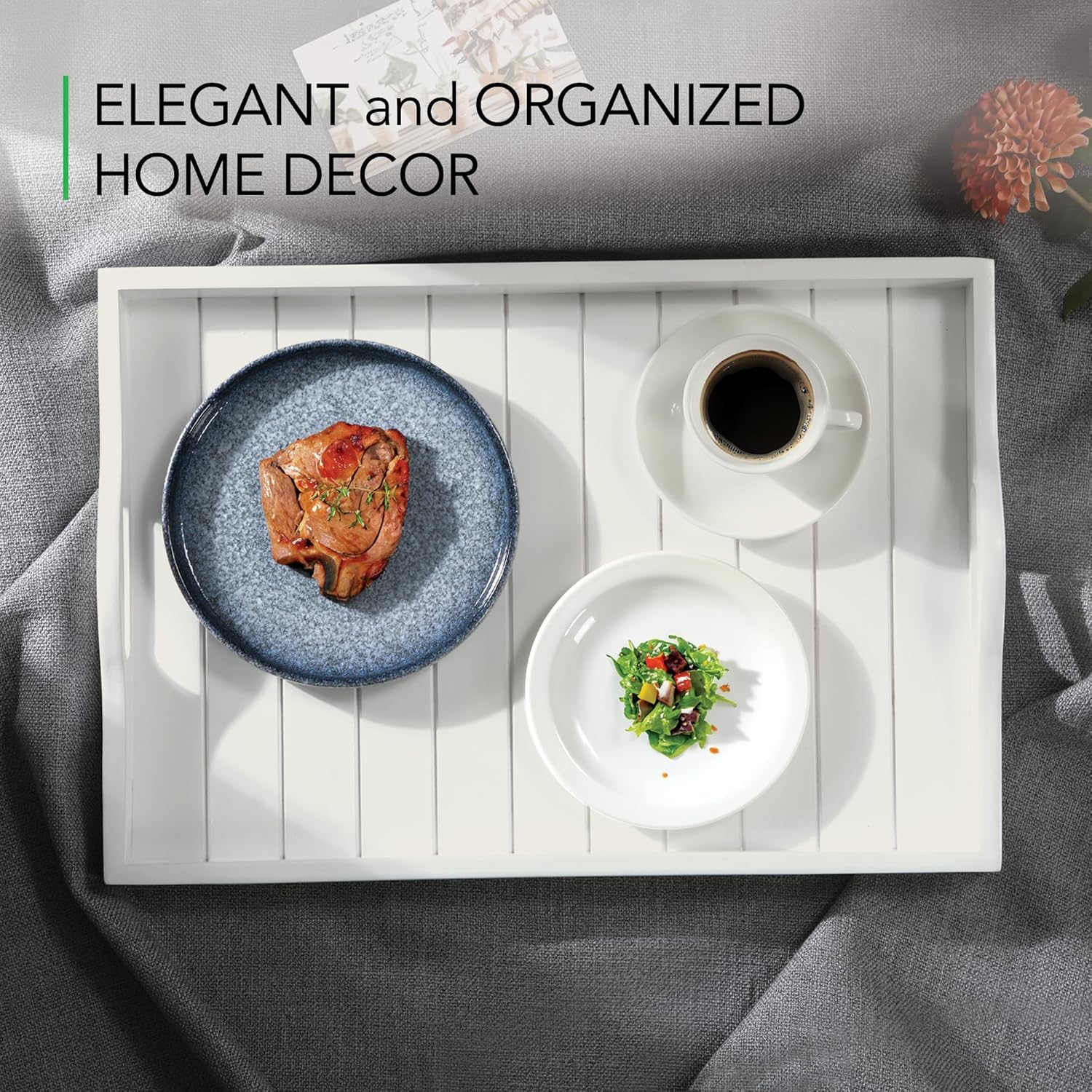 Large Wooden Serving Tray with Handles 20 x 14 inch Decorative Coffee Table Ottoman Tray for Living Room Extra Large for Kitchen Dinner Food Bar Breakfast in Bed (Color White)