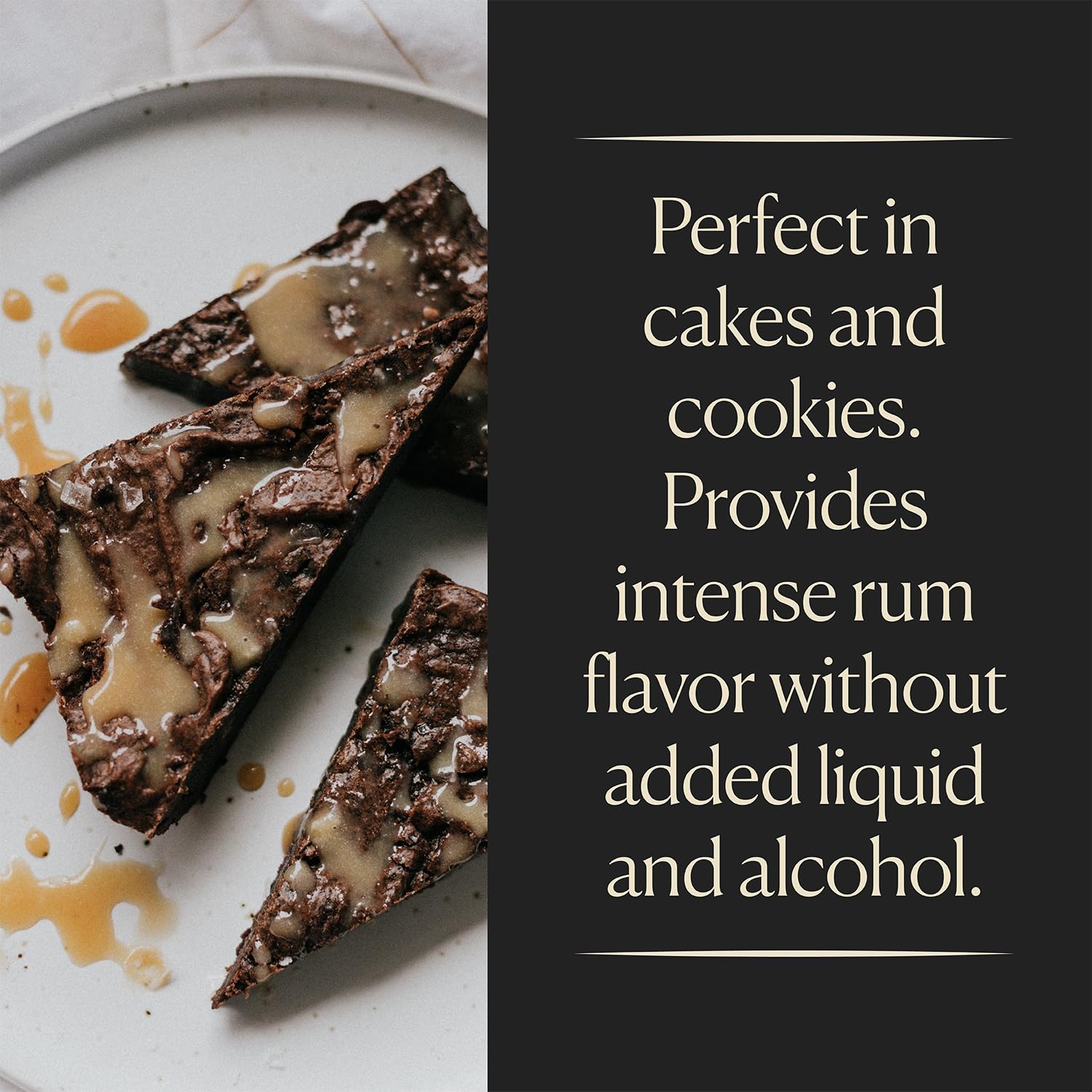 - Provides intense rum flavor without added liquid and alcohol. Fantastic in cookies and cakes.