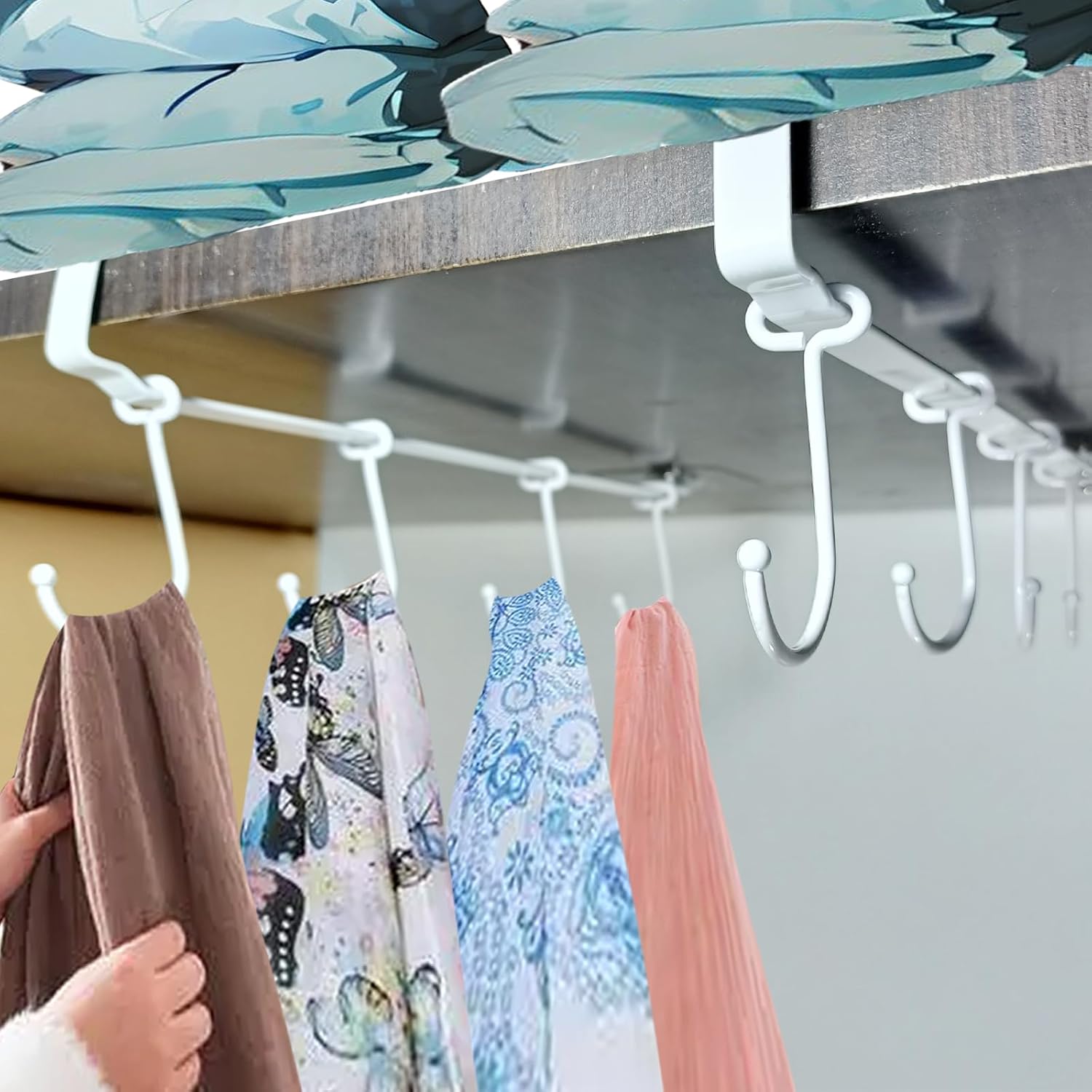 - EASY TO INSTALL & CLEAN:Package includes 2 sets of products with 8 adjustable hooks, 2 flat clips, 2 self-adhesive stickers and 2 screws. Installation is quick and easy, and the hooks are easy to clean, too