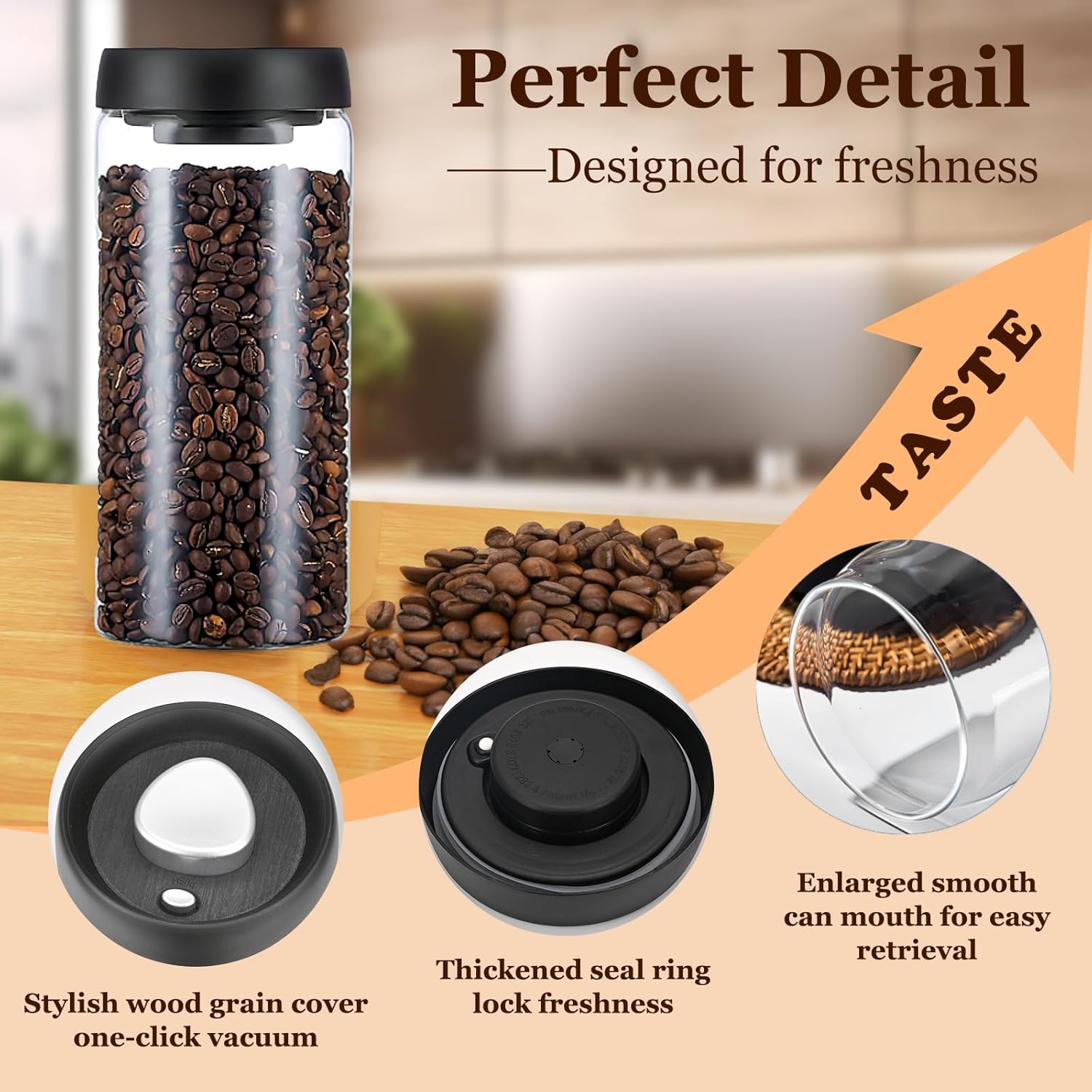 - ✅【Real Freshness Keeper】 Only vacuum can really keep fresh!Our vacuum seal canister press just one button to remove air to prevent oxidation and keep fresh five times longer. Perfect for coffee beans, coffee grounds, loose tea, spices, candy, nuts,dog food and other dry food.