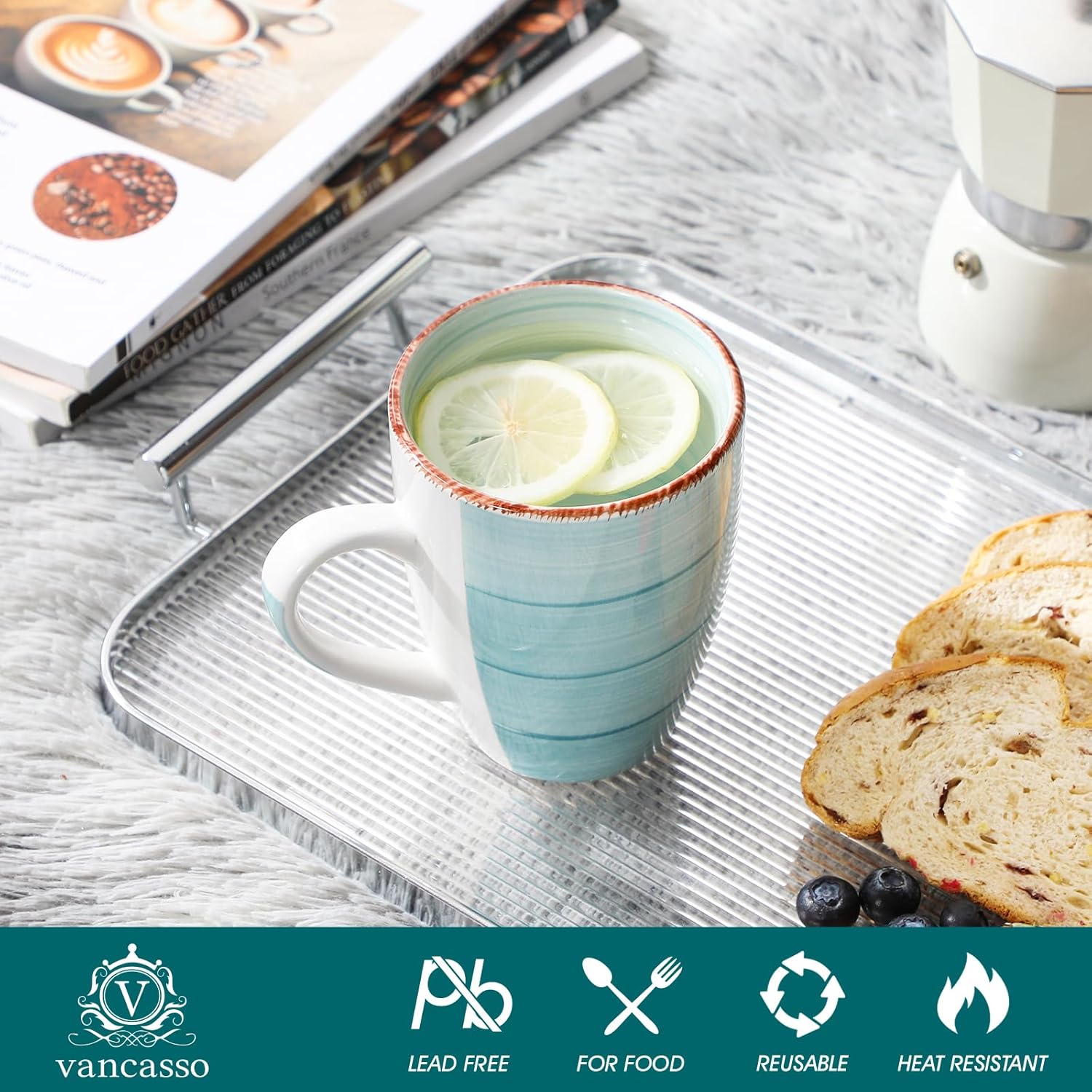 vancasso Bonita 16 Oz Large Coffee Mugs Set of 6, Ceramic Coffee Cups for Cappuccino, Latte, Tea, Cocoa, Blue