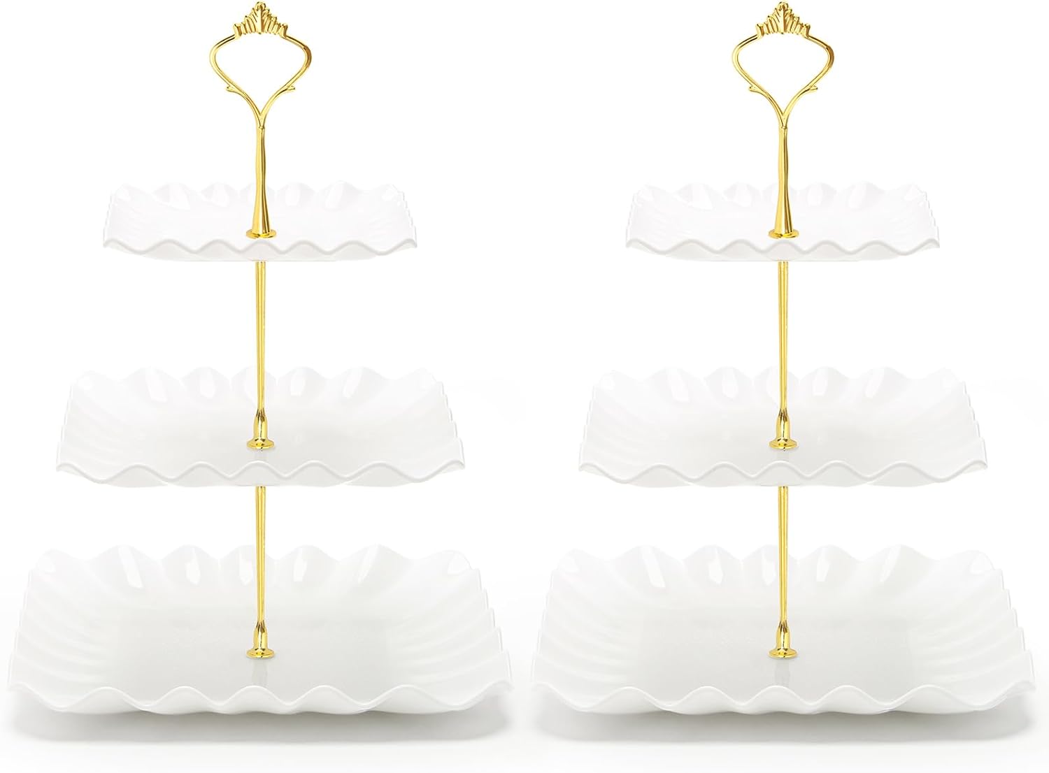 - Food Grade Material: 3 tiered serving stand are made of food safety PP material, stable and lightweight, perfect for displaying cupcakes, appetizers, brownies and other party treats.