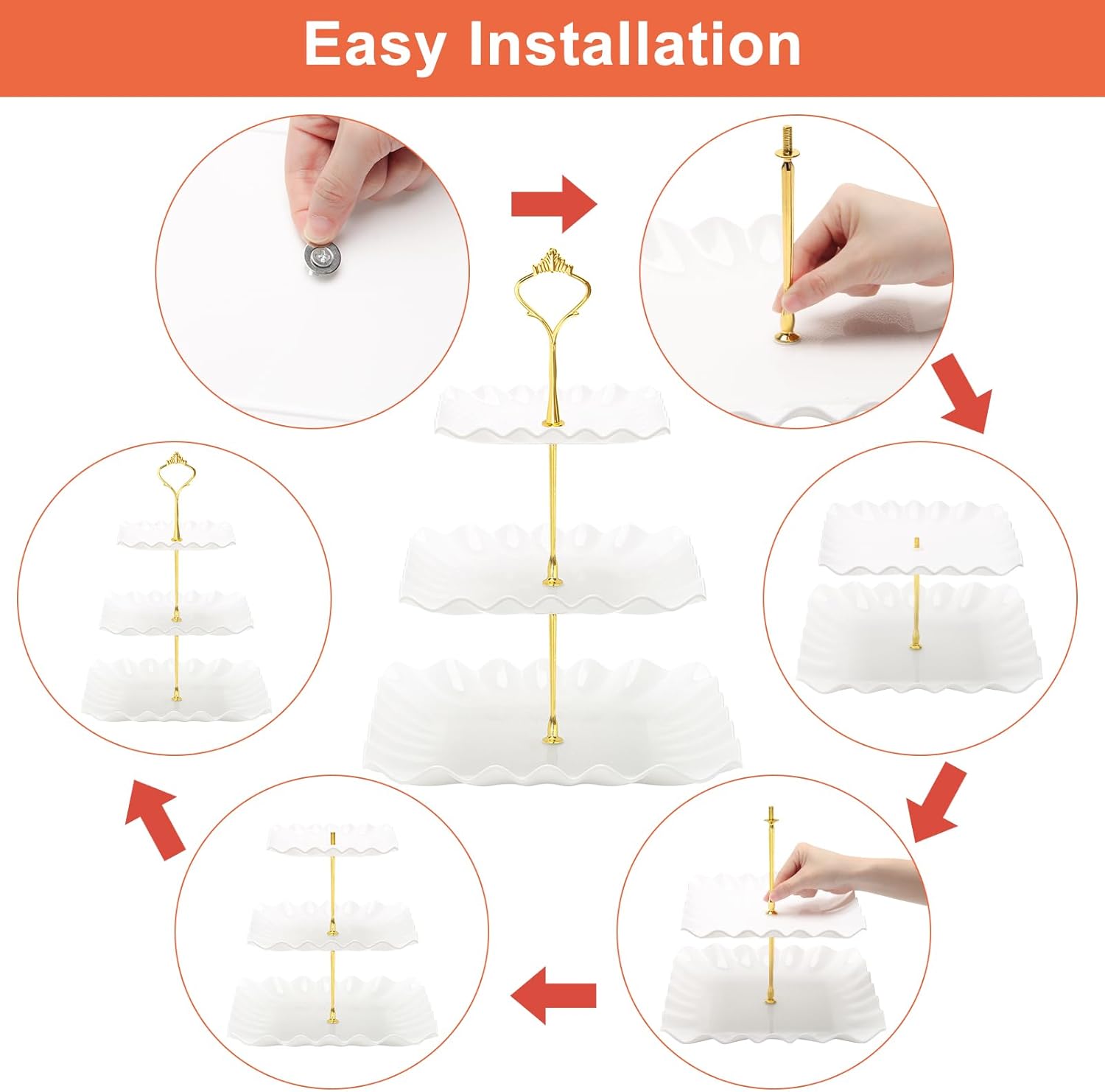 - Easy to Assemble: The whole cupcake stand has strength and stability by connecting the tiers with solid metal pillars and screws. Using the washers (included) and a screwdriver during assembly will make it stable.