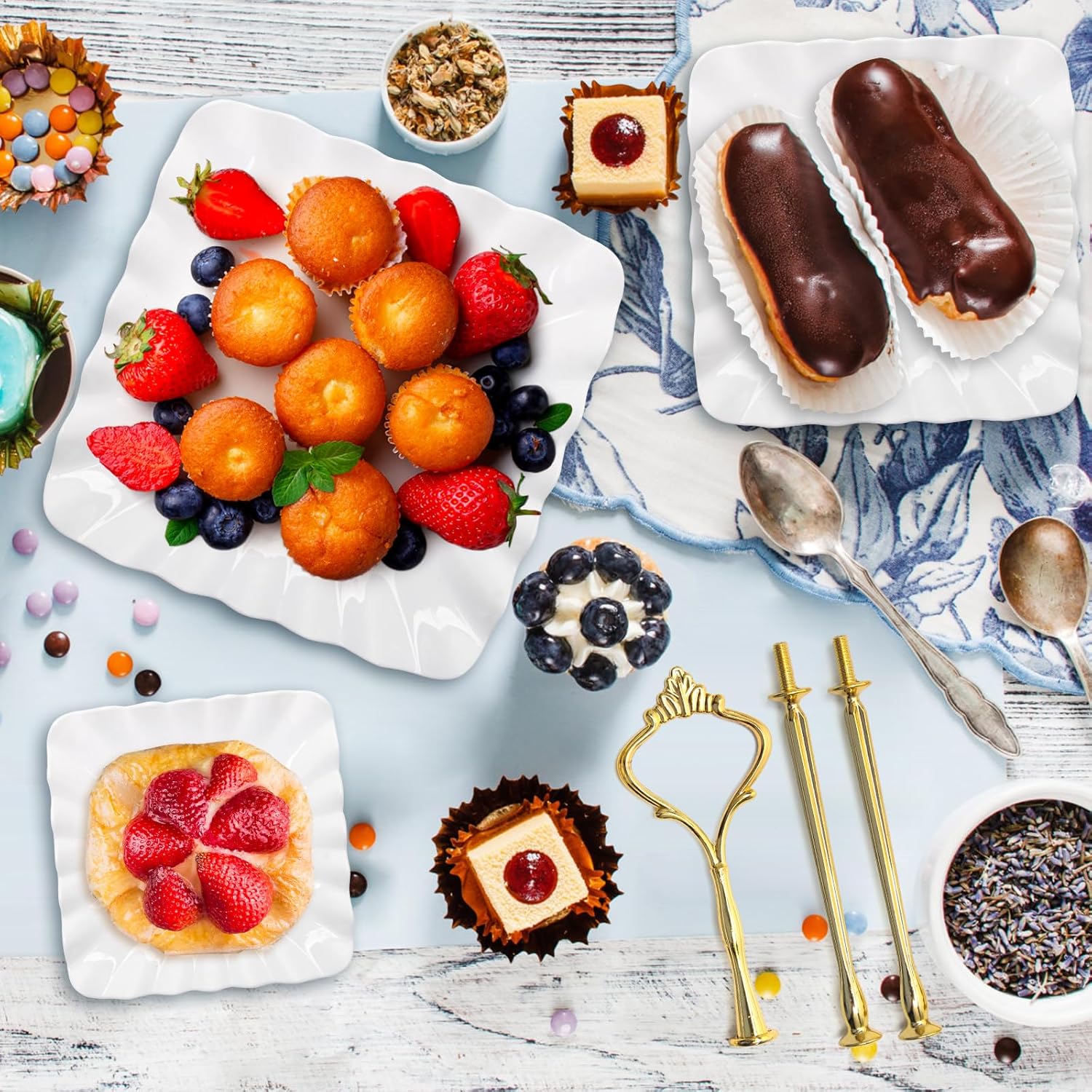 - Elegant Design:Tiered serving stand are carved with wavy edges, the plate is thick and the surface is shiny, full of elegant and romantic feeling. Crown handle design, easy to carry.