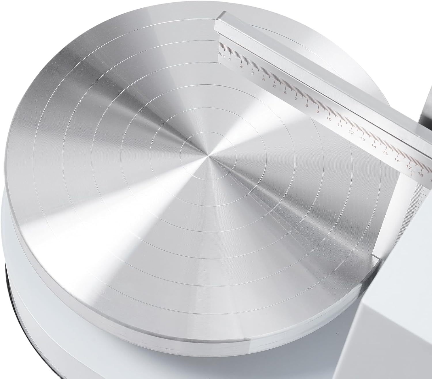 - Adjustable Scale Scraper - The scraper is designed with precise scales, cake decorating machine can adjust the height and width of the cake edge as needed to meet the needs of different sized cakes, flexible and easy to use. The horizontal spatula can be lifted up to 7.9 inches and the vertical spatula can be pulled from the edge of the carousel to the middle of the carousel at a distance of approximately 6.9 inches for 4-12 inch cakes.