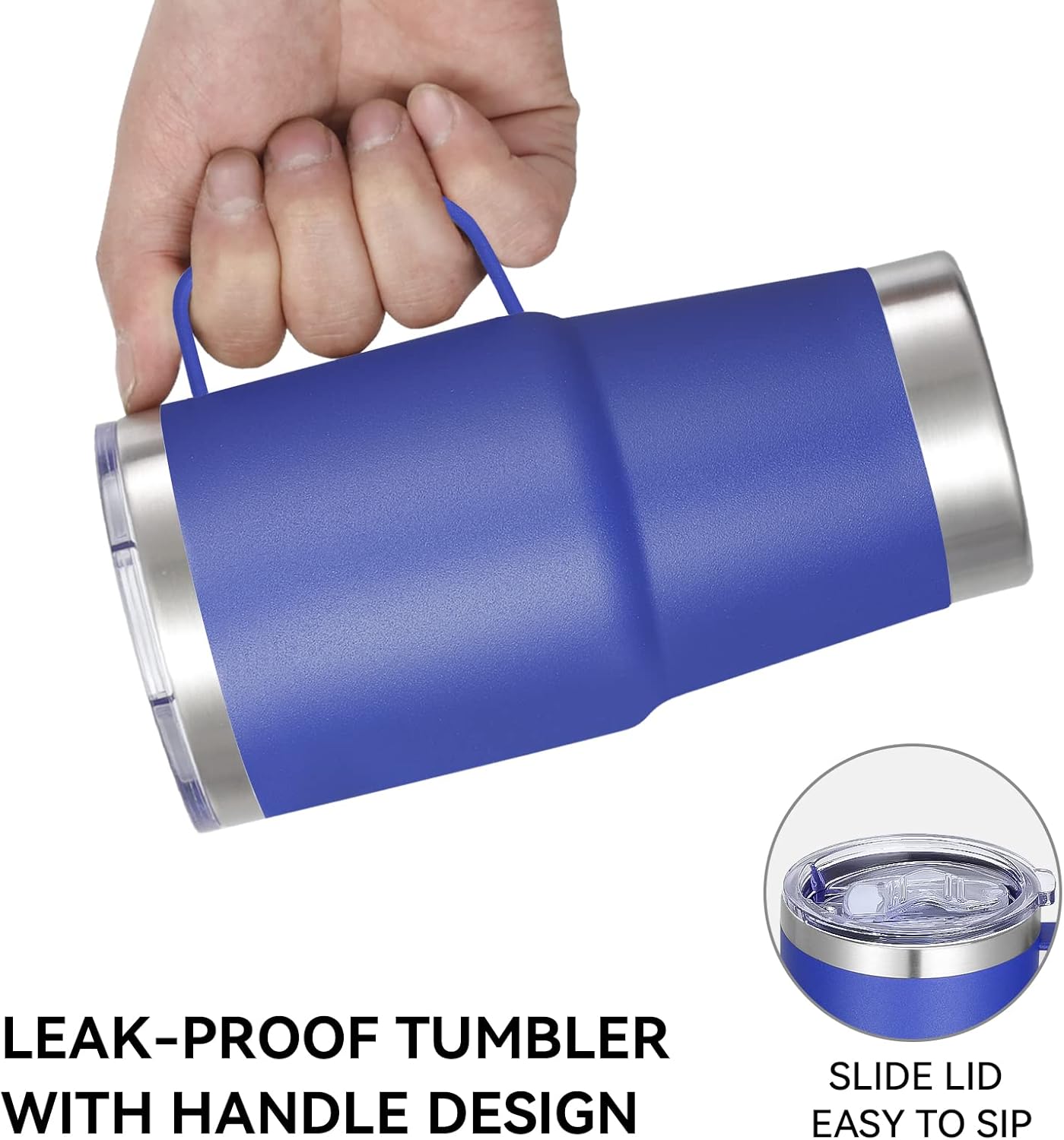 - Stainless Steel Tumblers with Handle: Made of 18/8 food grade stainless steel,it won't retain or transfer flavors with the electro polished inside and also sweat proof with colorful powder coating outside. 360-degree welded handle gives you a firm grip on your beverage.