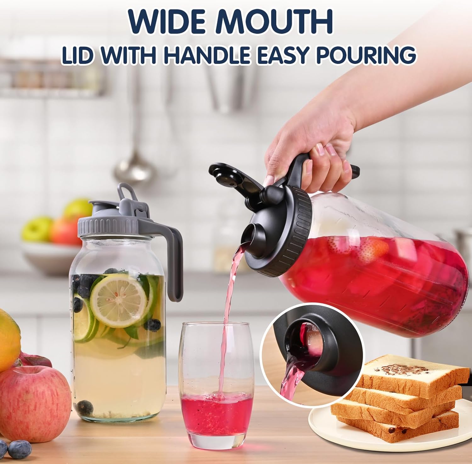 Glass Pitchers with Lid, Set of 2, 64OZ Leak-Proof Airtight Mason Jars, Wide Mouth Water Jugs for Cold Brew Coffee, Iced tea, Milk, Food Storage, Sun Tea Jar.